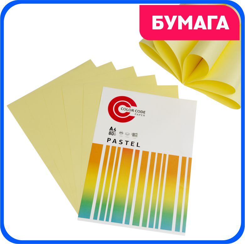 Цветная бумага для принтера/для печати/для творчества/офисная пастель,жёлтая 80г, А4, 50 листов