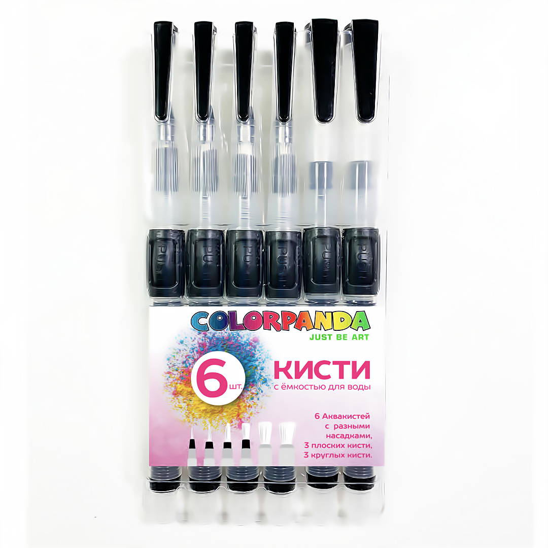 Набор кистей с резервуаром для воды "COLORPANDA", 6 шт