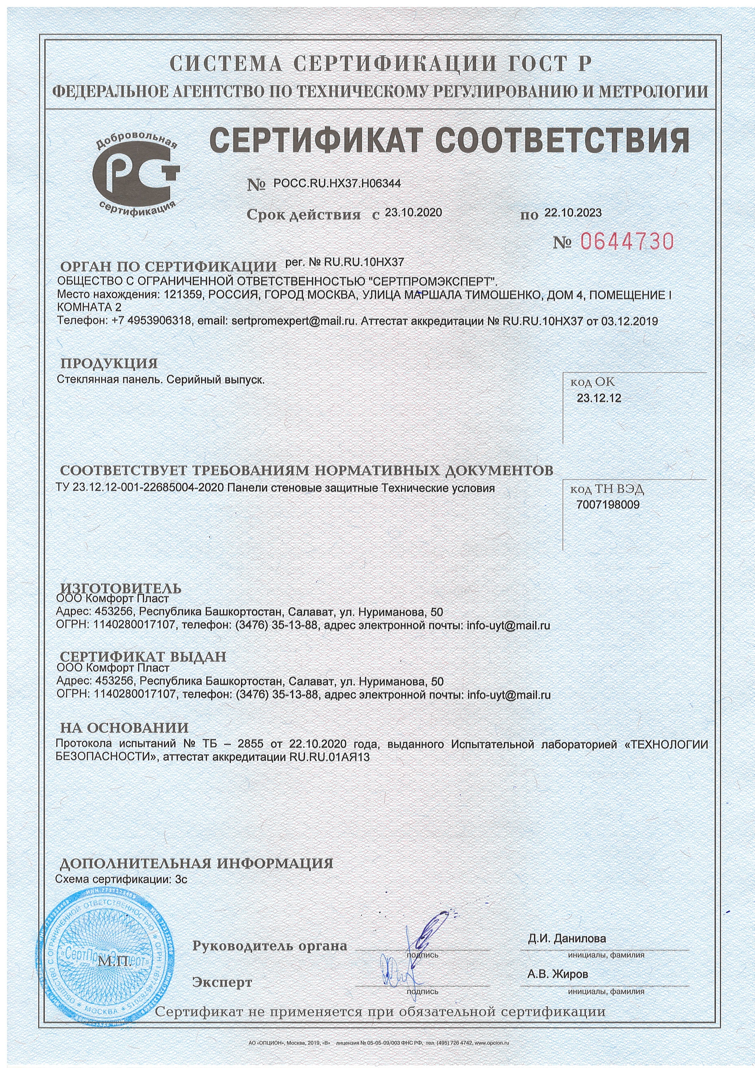 Защитный экран для кухни Comfort Plast Стеклянная панель 600*600*4 RAL9005(черное)