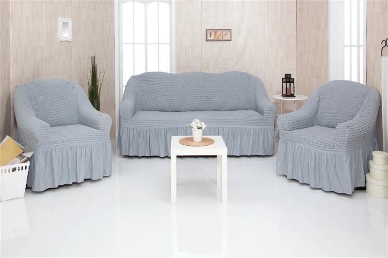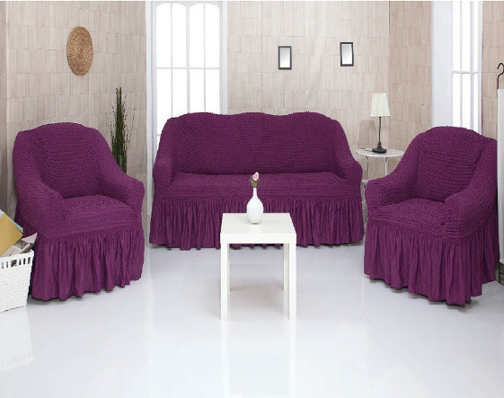 Чехол на трехместный диван с оборкой/ 3-х местный/ универсальный/ на мягкую мебель