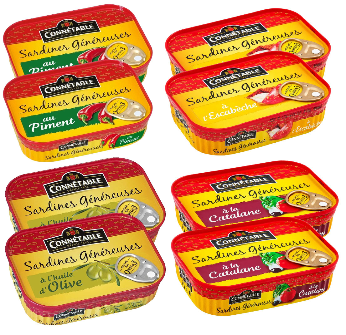 Сардины Connetable GENEREUSE Ассорти (Перец, Эскабече, Оливковое масло, Каталонский соус), 140г, 8шт. Марокко