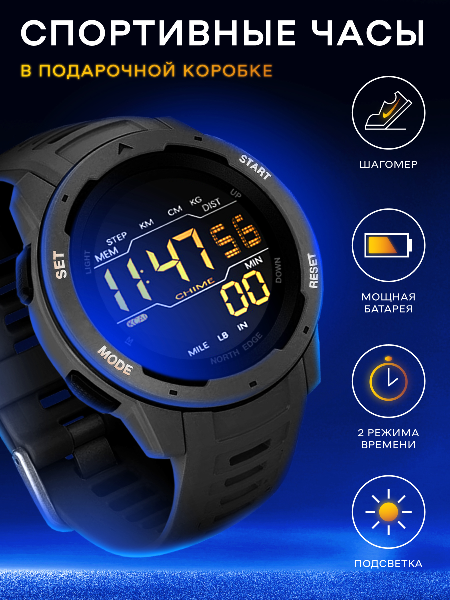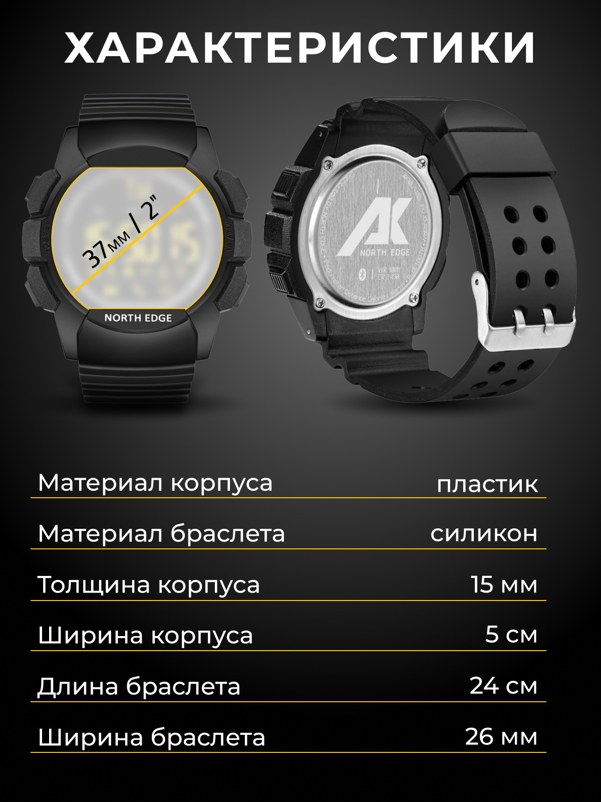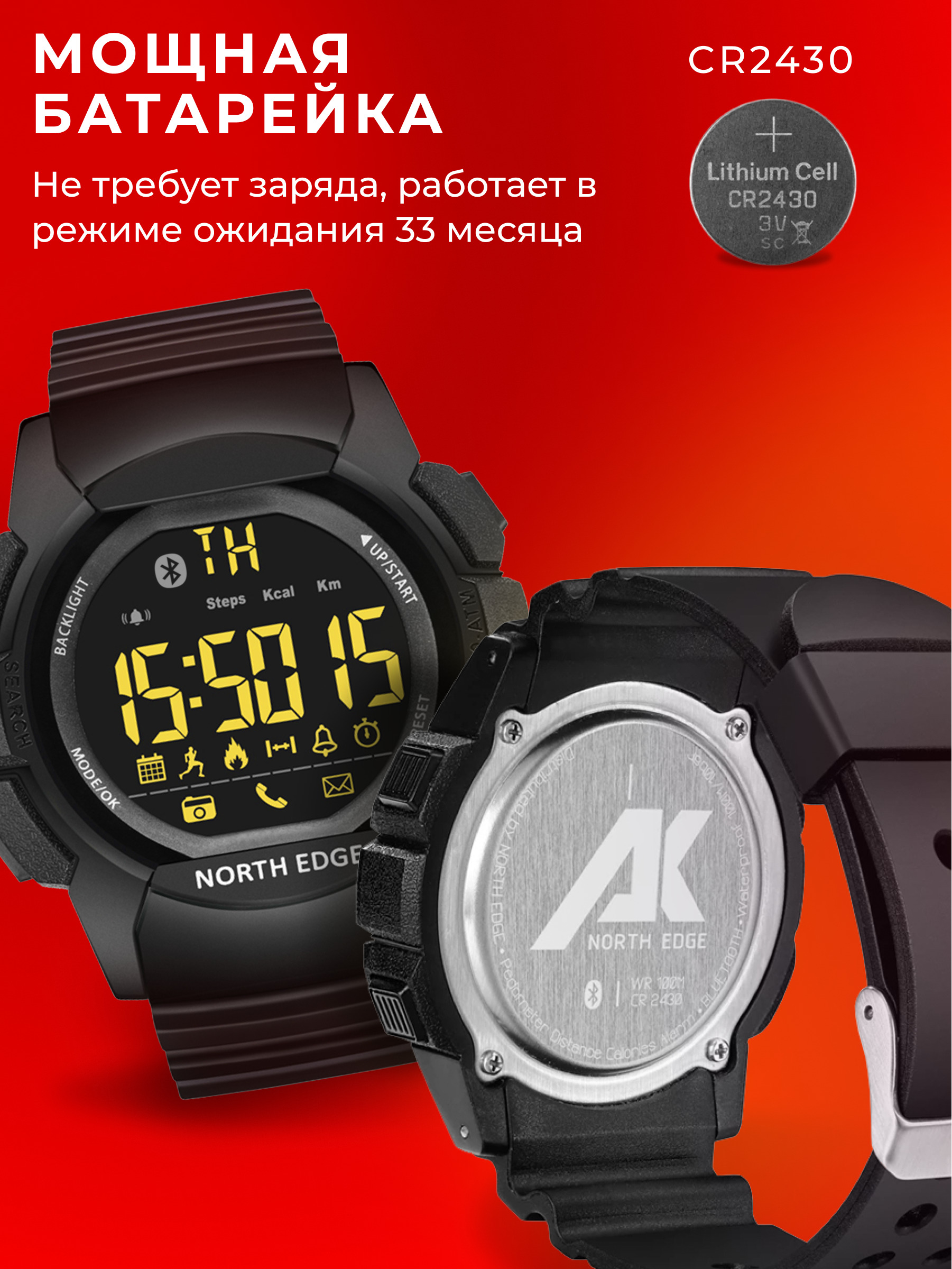 Часы наручные мужские спортивные водонепроницаемые Contacts NORTH EDGE AK