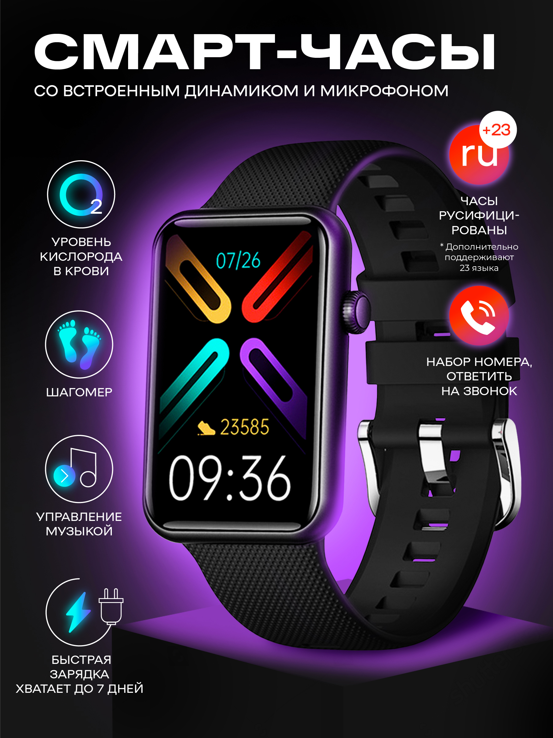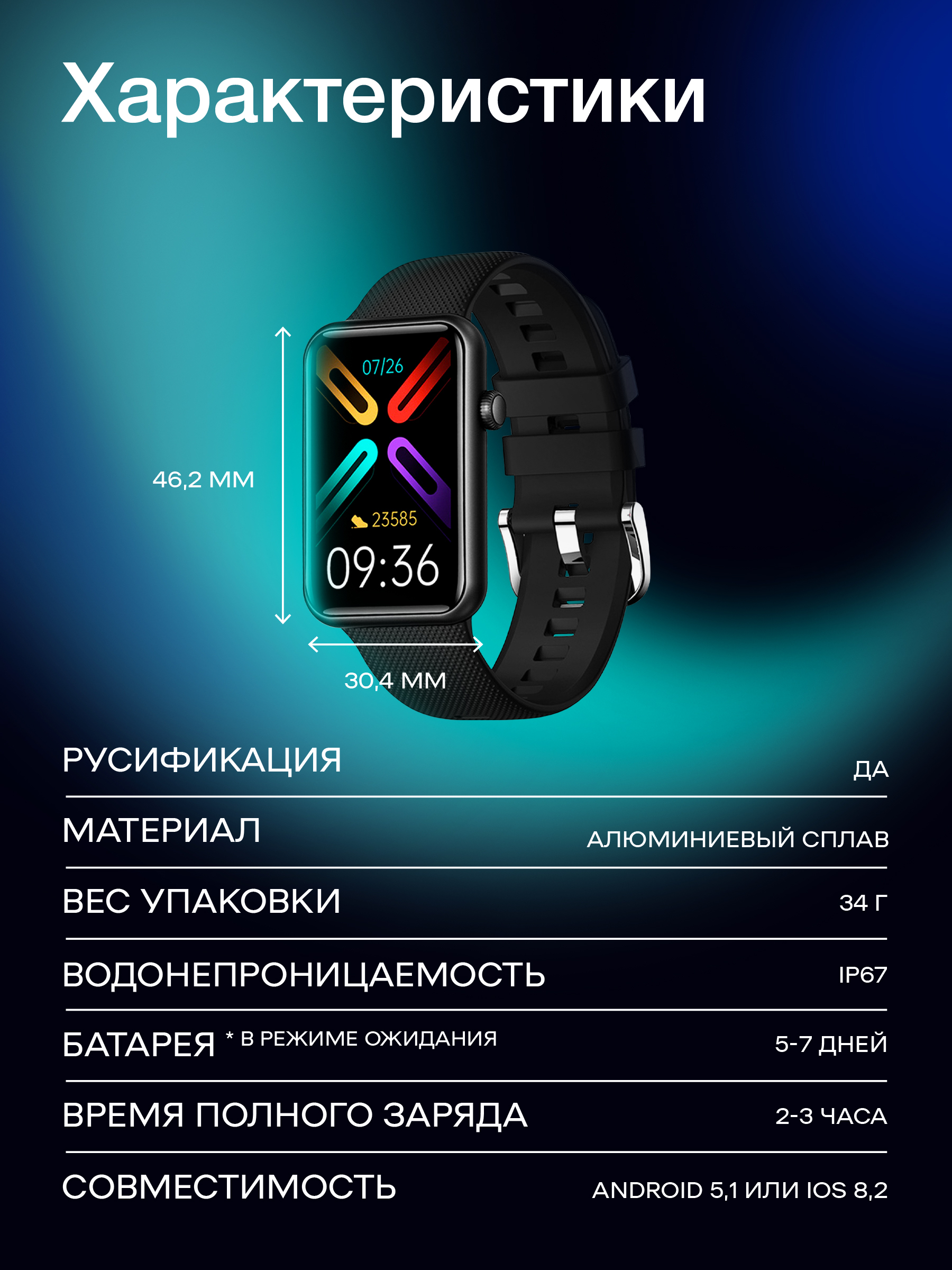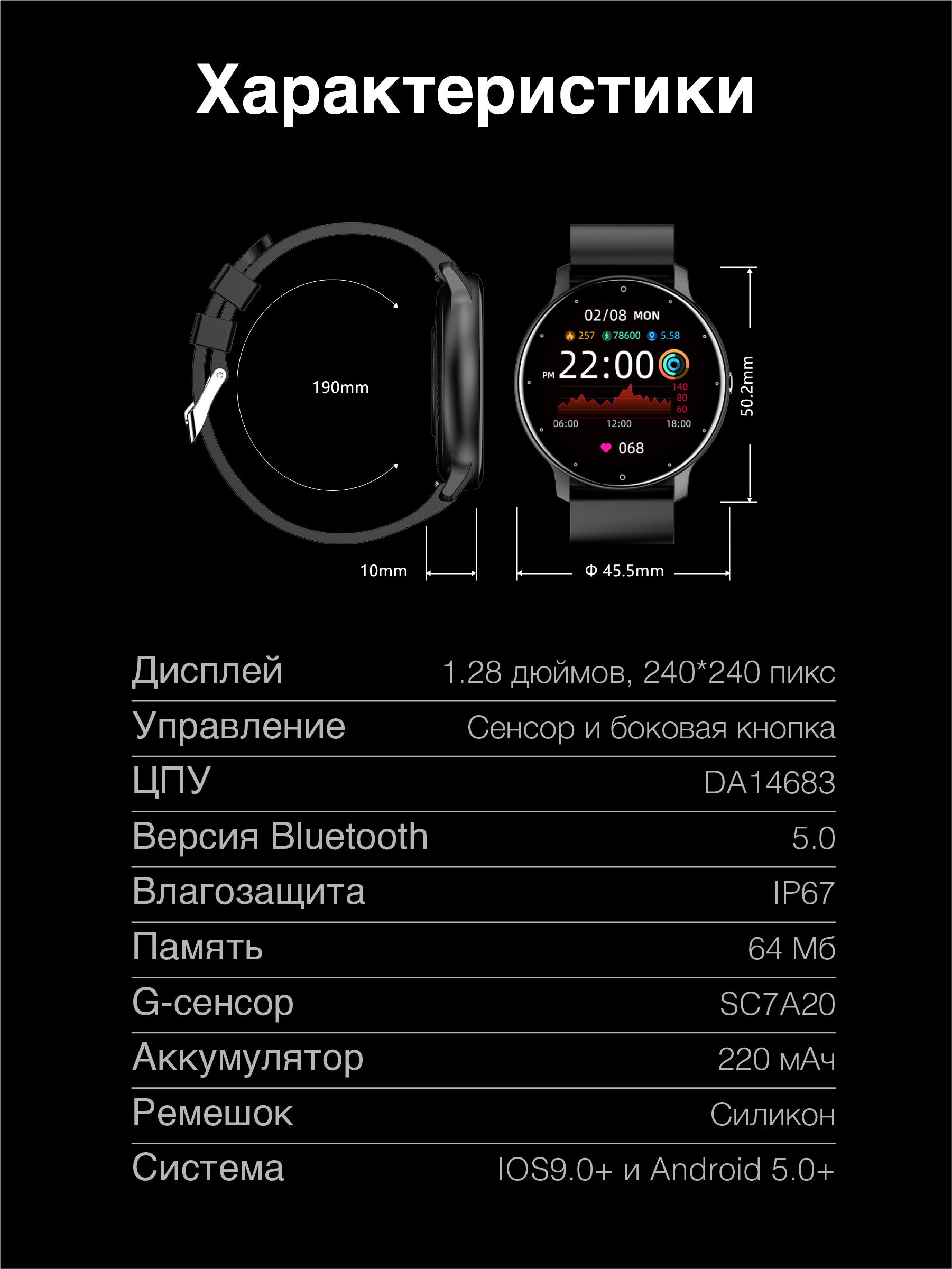 Умные часы Contacts Smart Watch, 45mm, черный