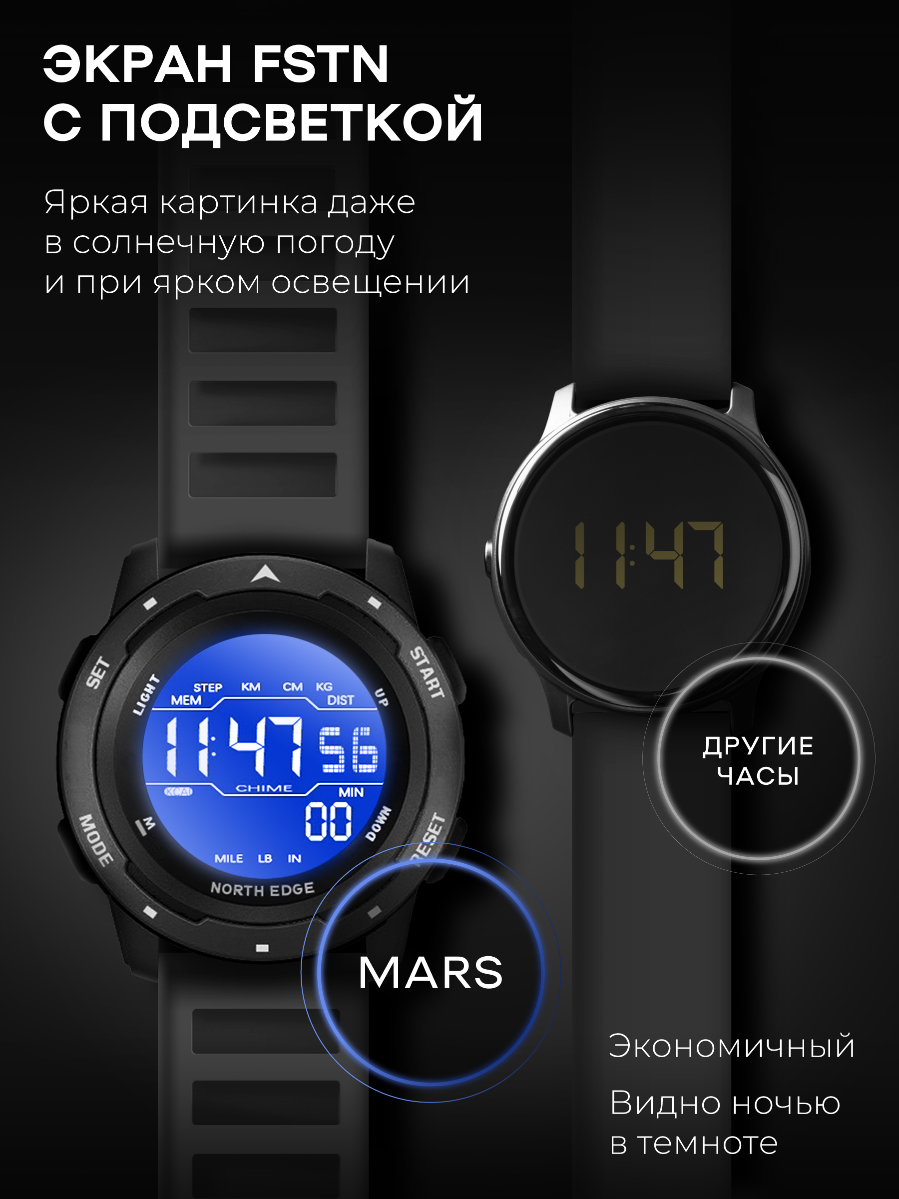Умные часы Contacts NORTH EDGE Mars, 44mm, черный