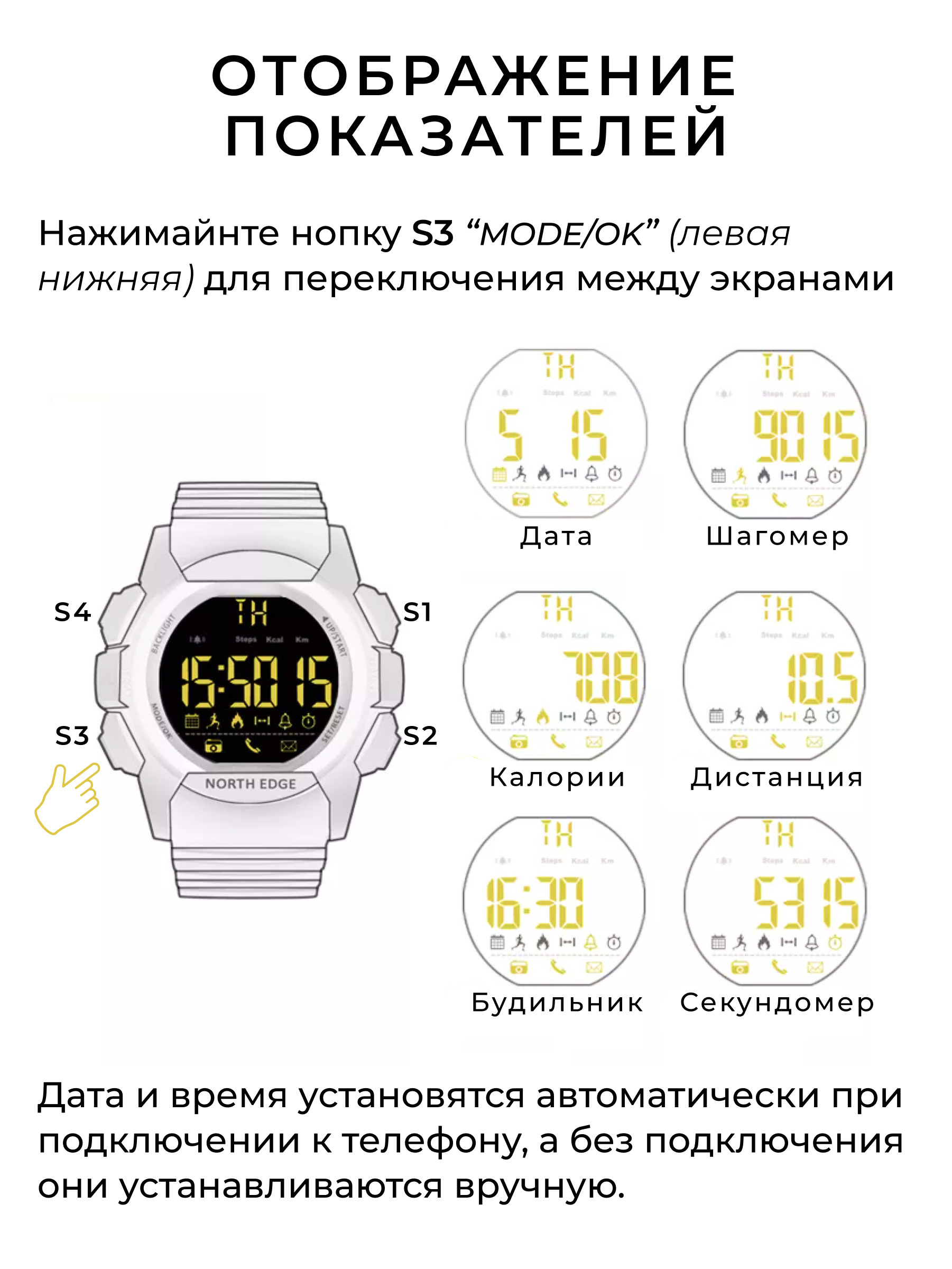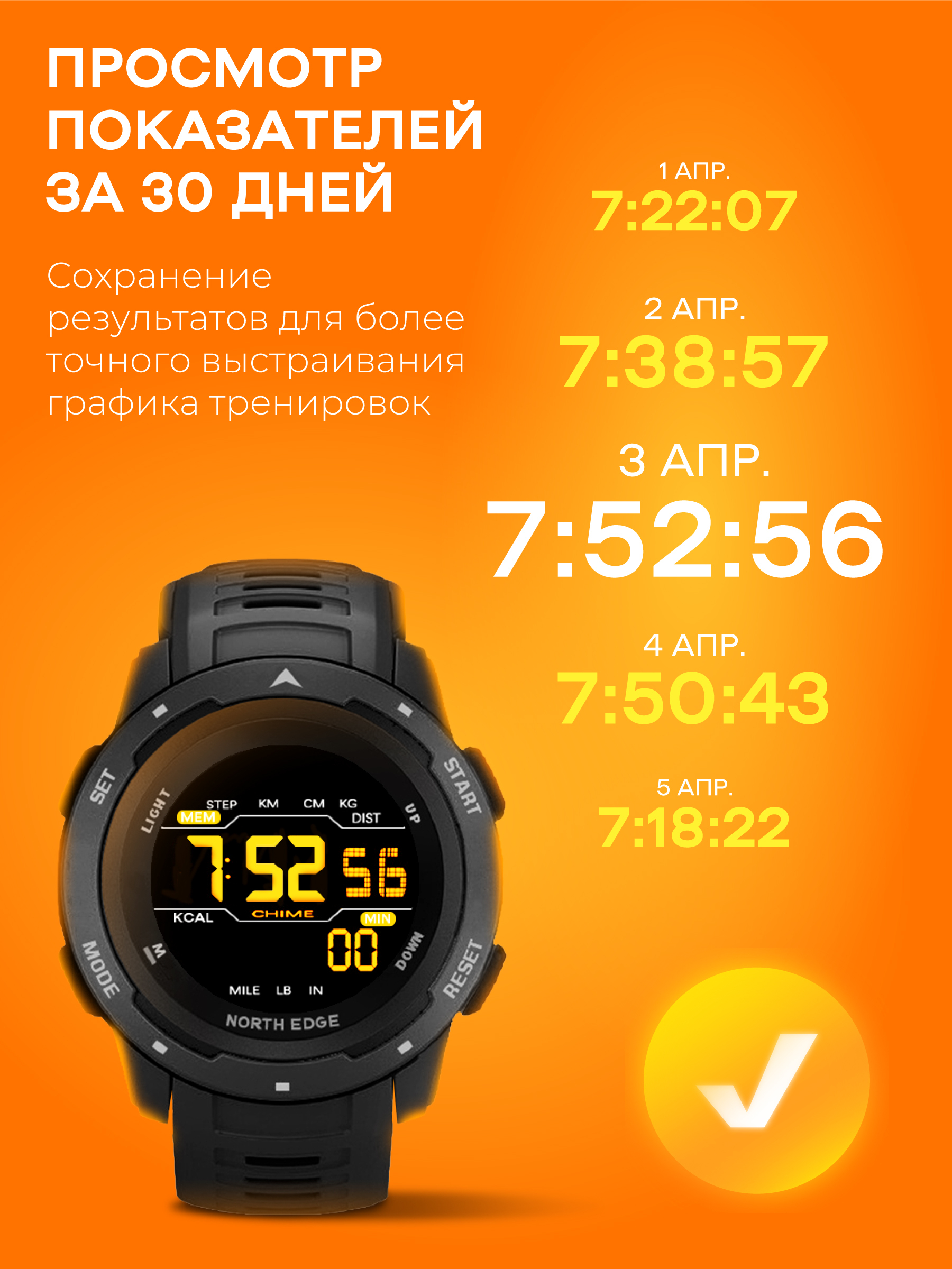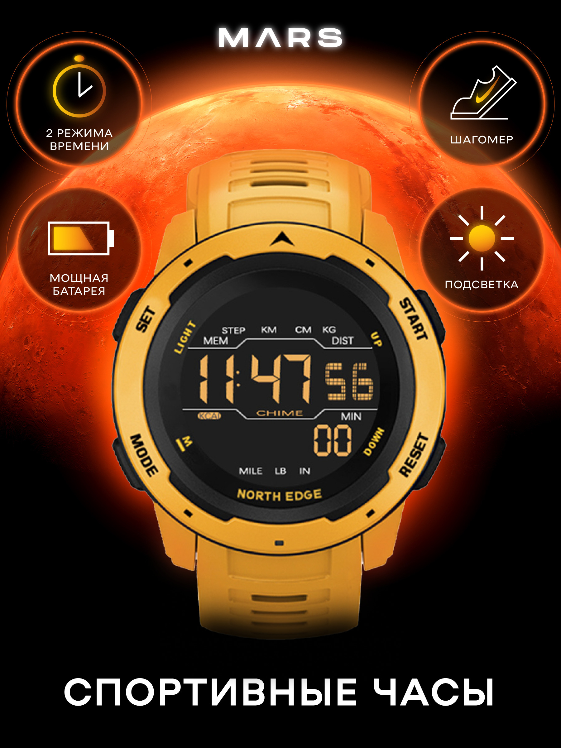 Умные часы Contacts NORTH EDGE Mars, 44mm, желтый