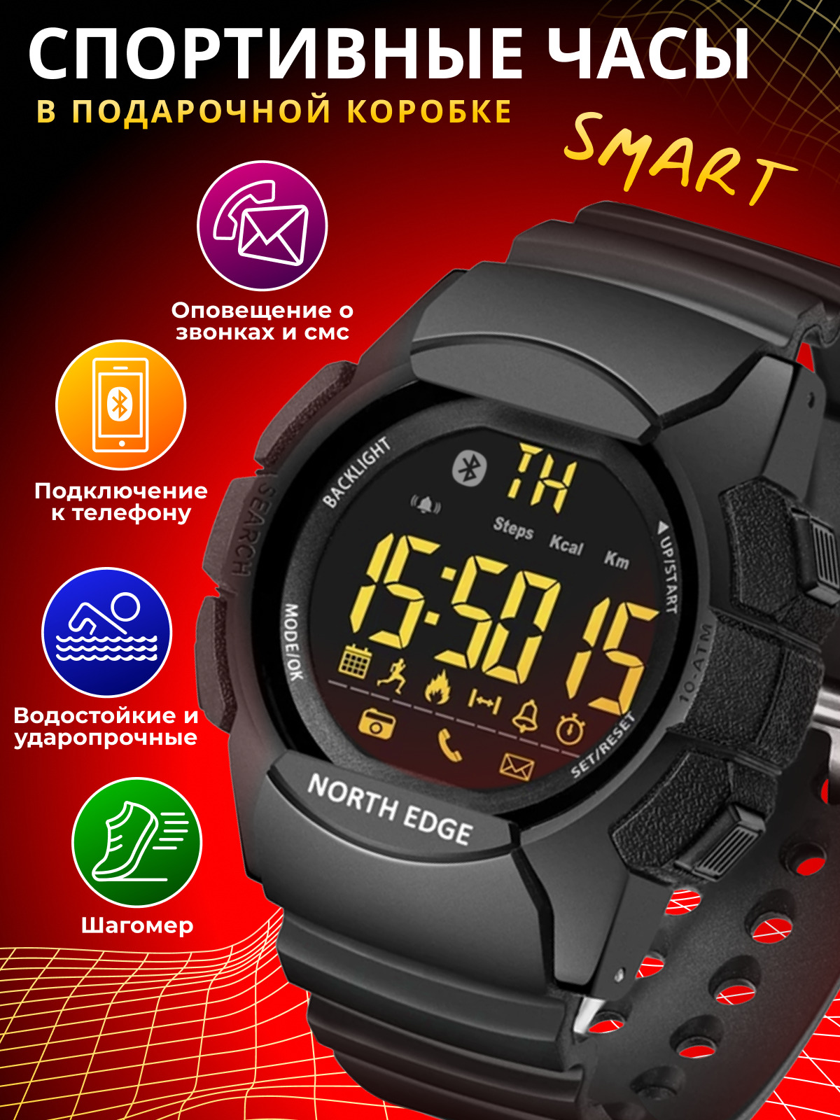 Смарт часы мужские водонепроницаемые Contacts NORTH EDGE H5