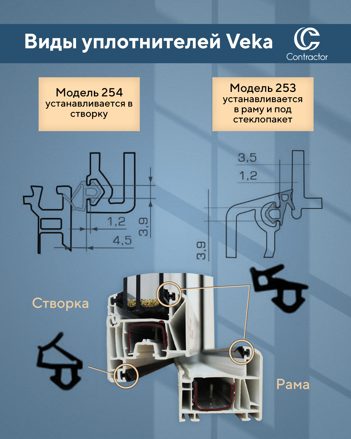 Уплотнитель для окон ПВХ Veka рама, стеклопакет (модель 112.253) черный 40 метров