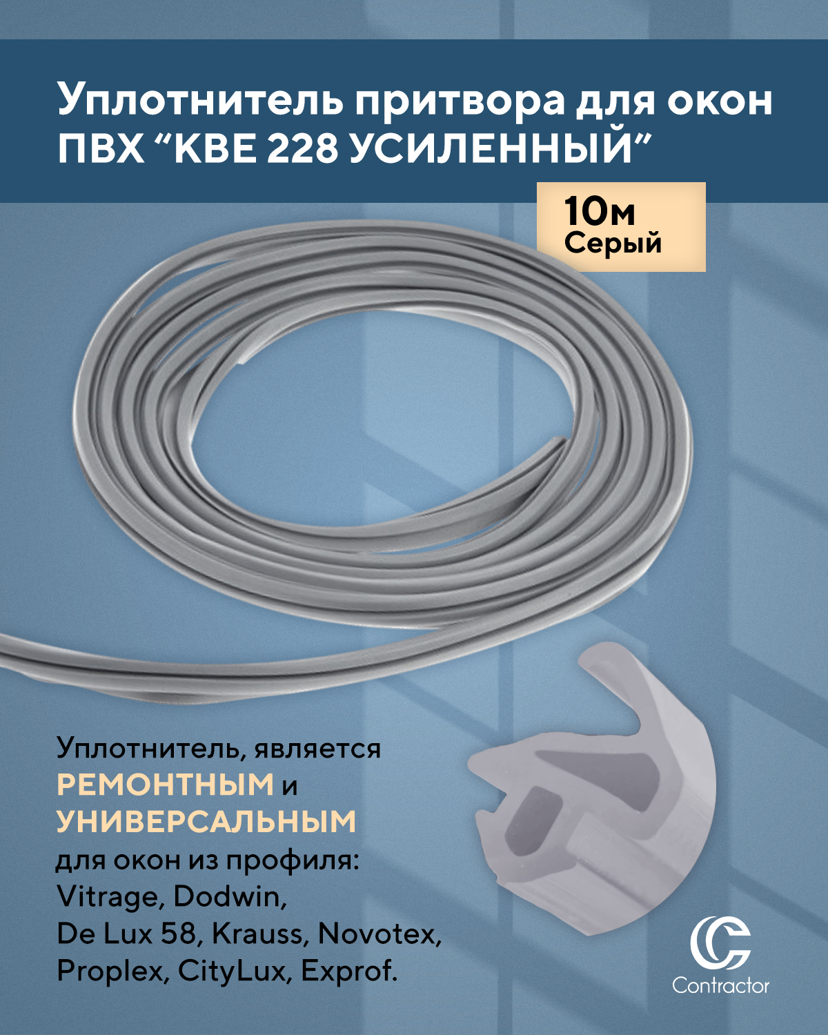 Уплотнитель для окон ПВХ 228 серый 10 метров усиленный универсальный