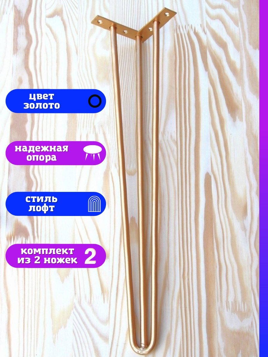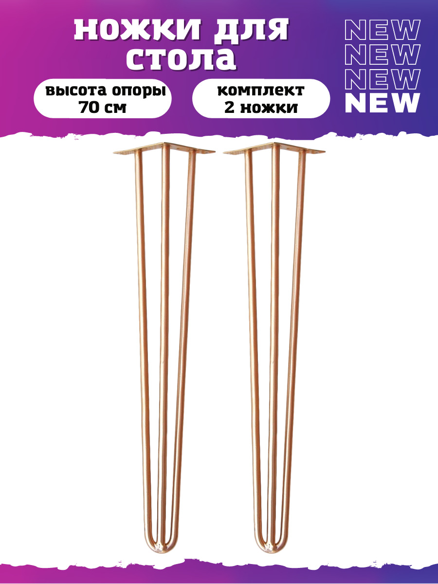 Опора мебельная /мебельные ножки для стола лофт/ ножки шпильки для стола/ 2шт. золото 70 см.