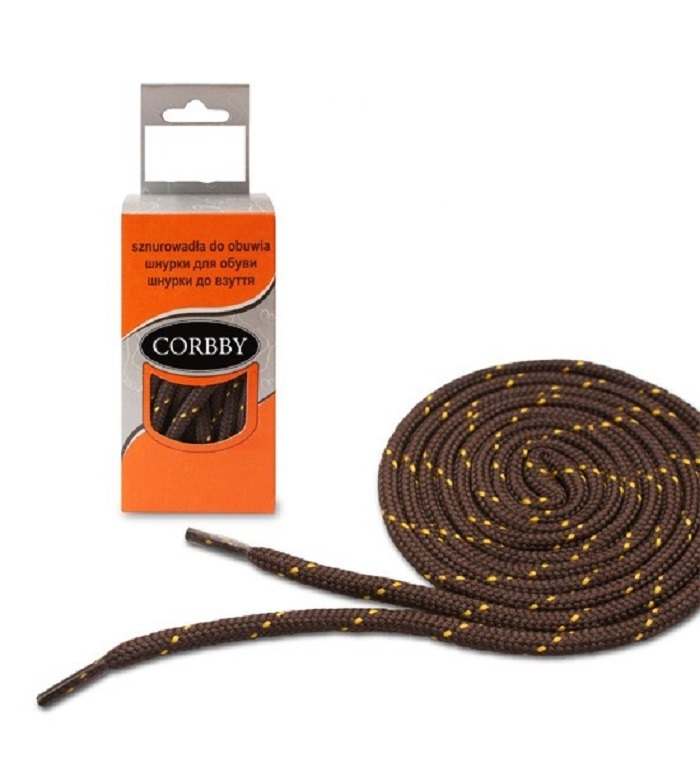 Шнурки круглые, толстые, коричневые 180см Corbby. Хлопок без пропитки.