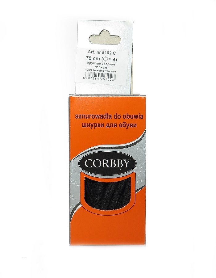Шнурки круглые средние CORBBY 75см черные