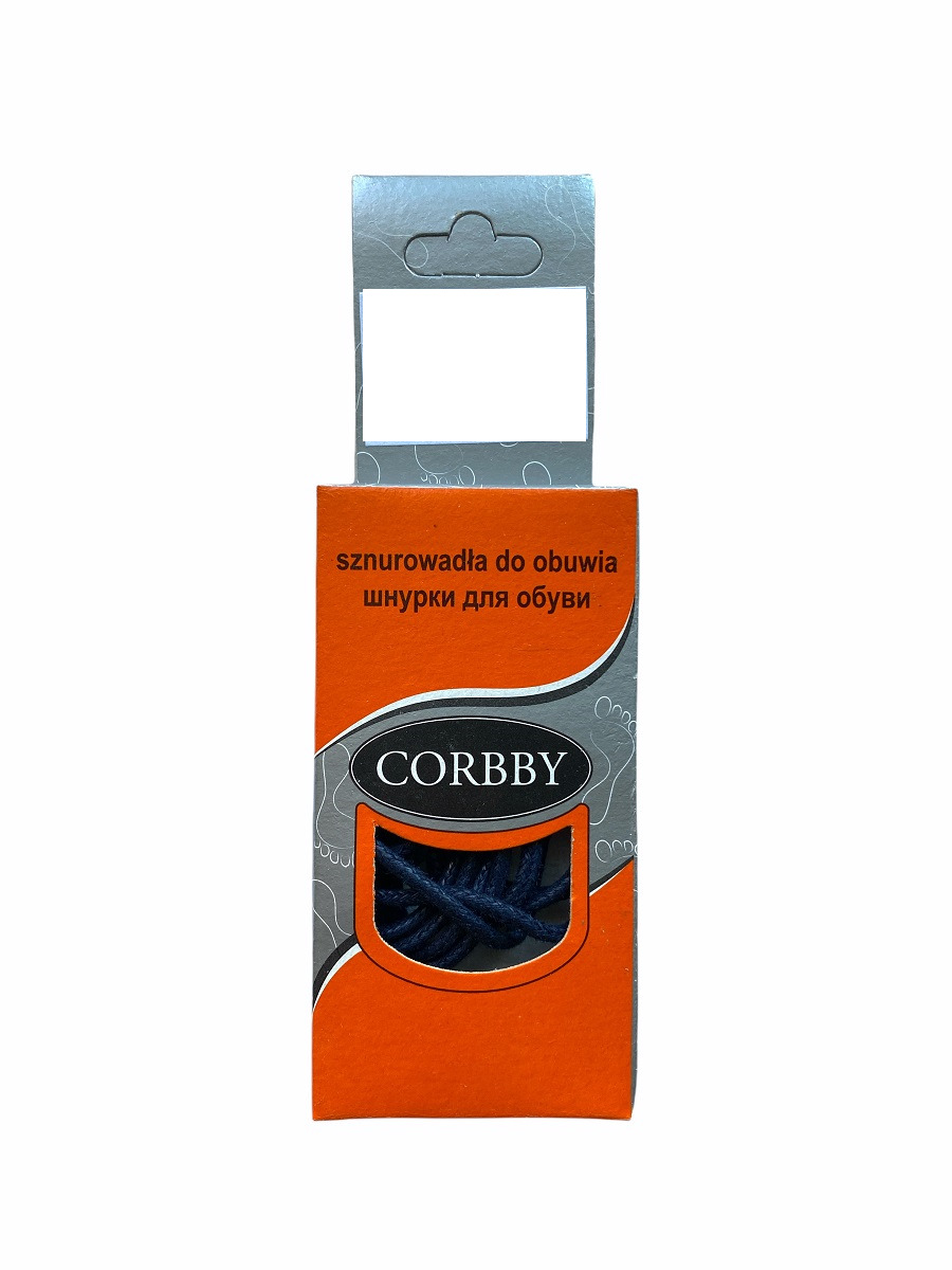 Шнурки круглые, тонкие, темно-синие 60см Corbby. Хлопок с пропиткой.