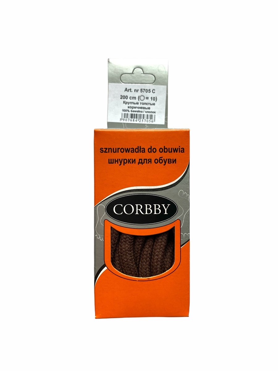 Шнурки круглые, толстые, коричневые 200см Corbby. Хлопок без пропитки.