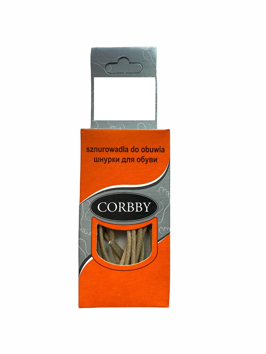 Шнурки, круглые, тонкие, бежевые 90см Corbby. Хлопок с пропиткой.