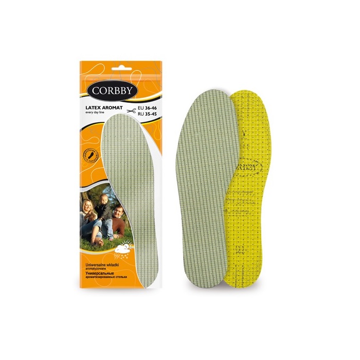 Стельки для обуви ароматизированные Corbby LATEX AROMAT, безразмерные.