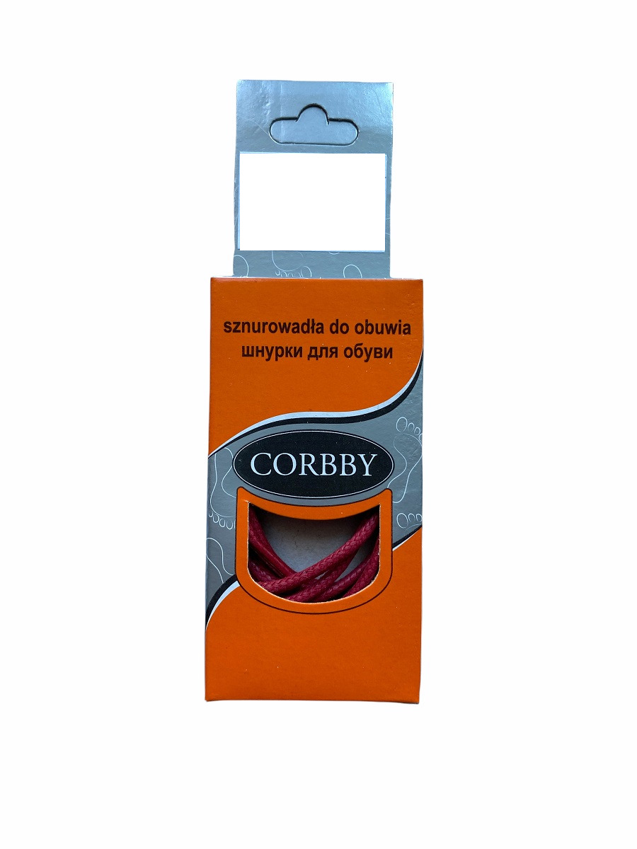 Шнурки круглые, тонкие 60см, красные Corbby. Хлопок с пропиткой.