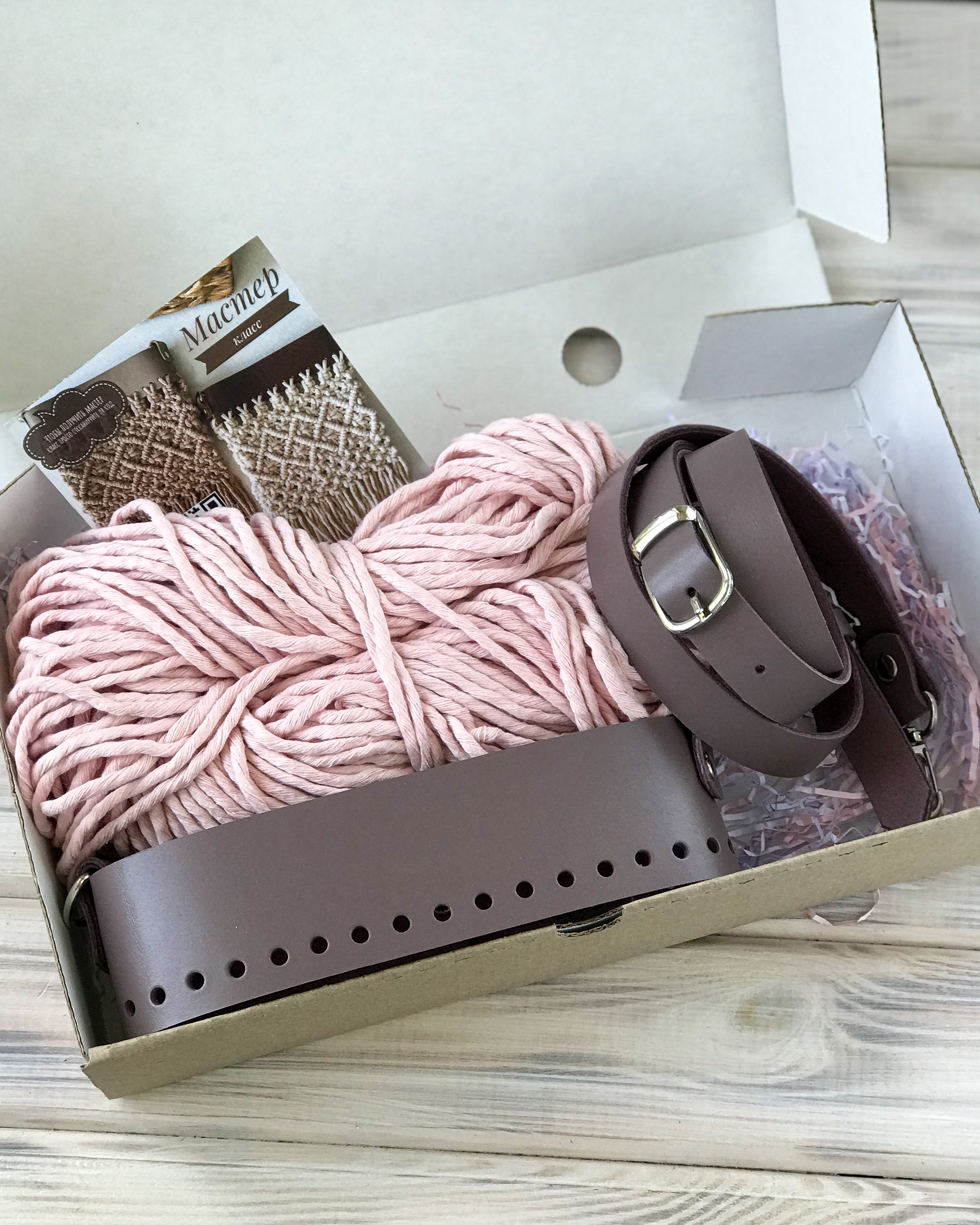Набор для плетения сумки в технике МАКРАМЕ + ВИДЕО МАСТЕР-КЛАСС В ПОДАРОК, цвет пыльная роза/розовый