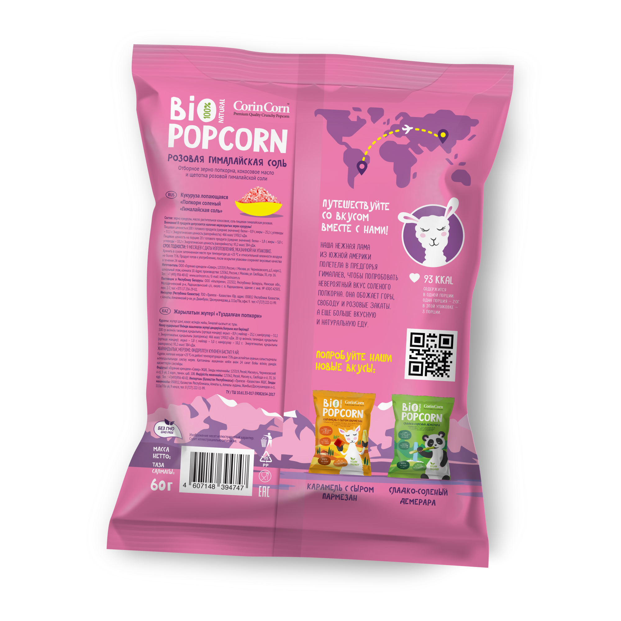 Попкорн готовый Bio POPCORN CorinCorn соленый розовая гималайская соль 60г х 4 пачки