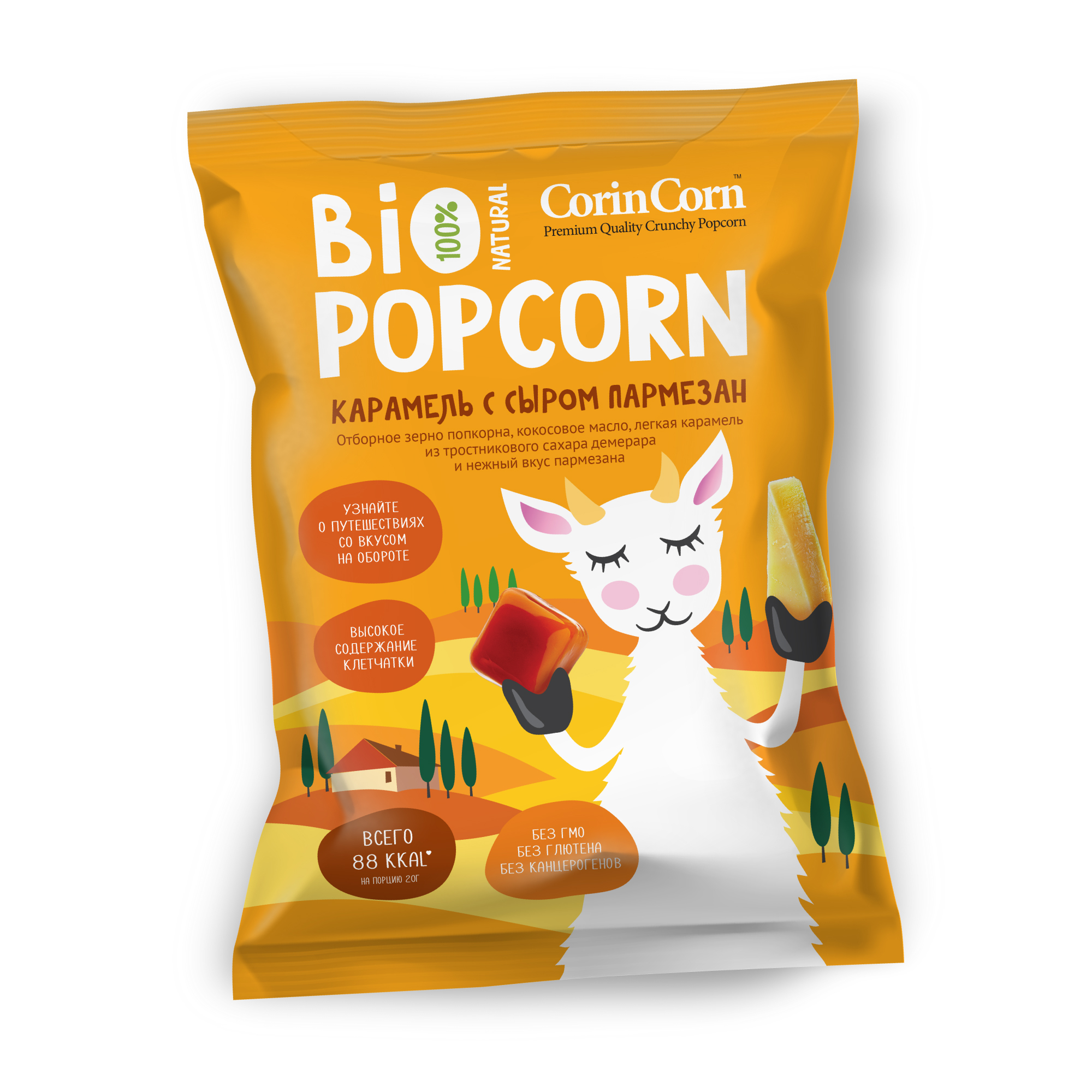 Попкорн готовый соленый Bio POPCORN CorinCorn со вкусом карамель с сыром пармезан 80г х 4 пачки