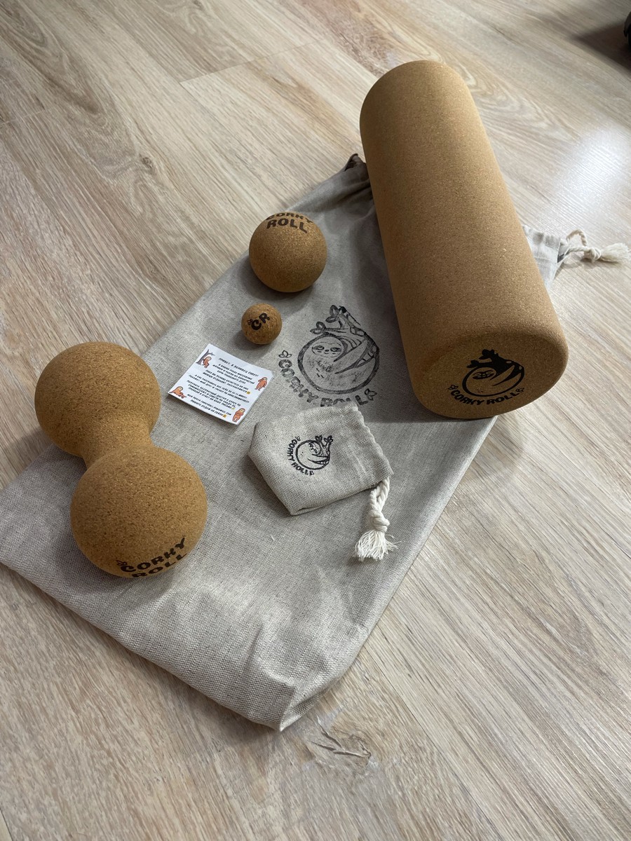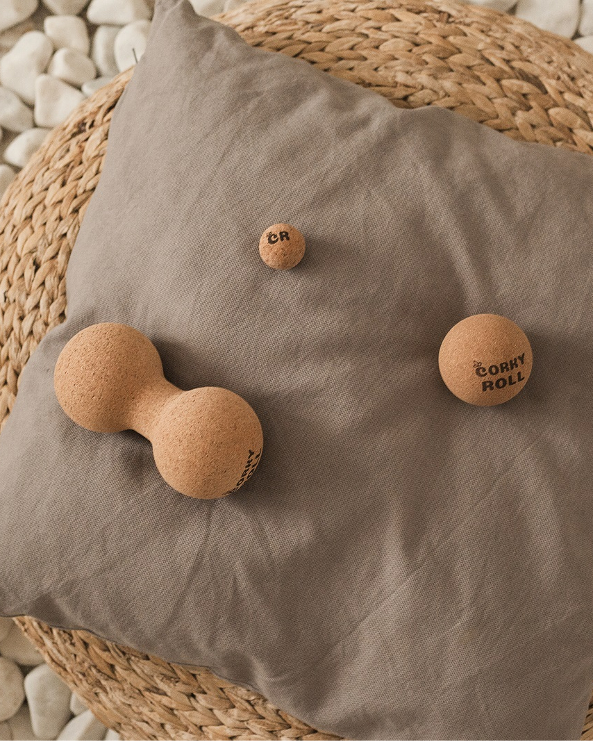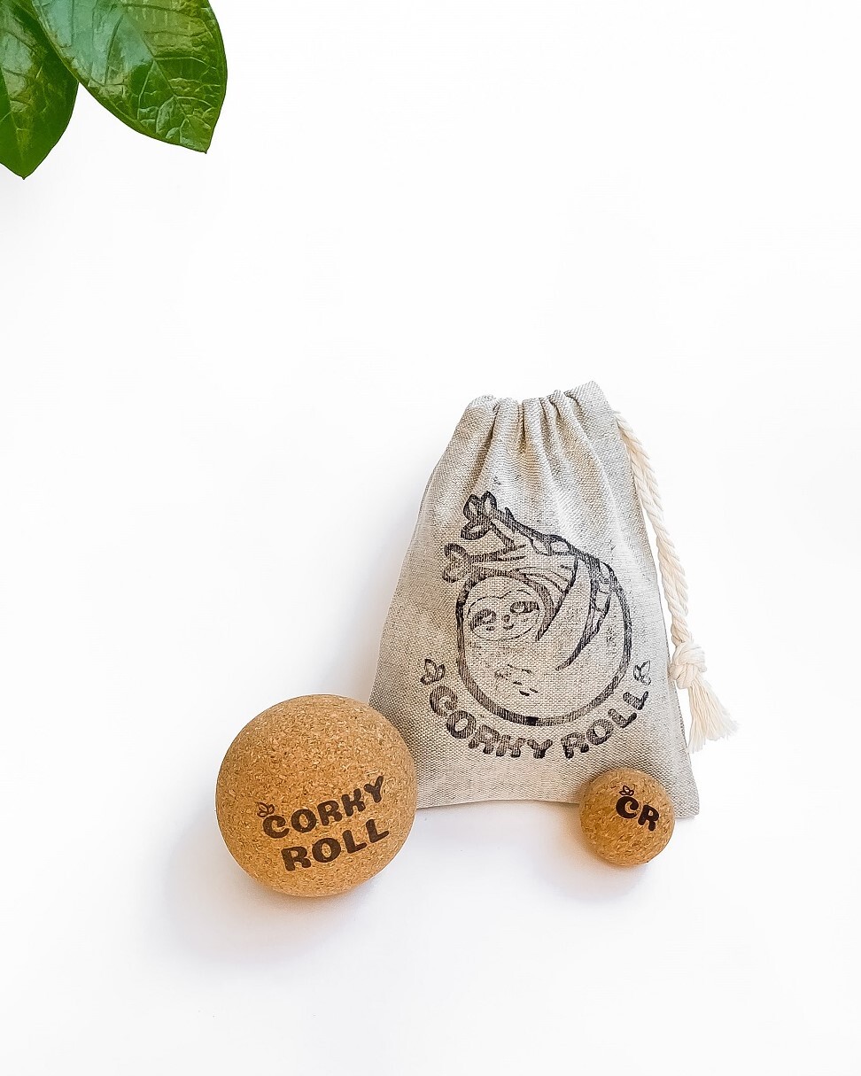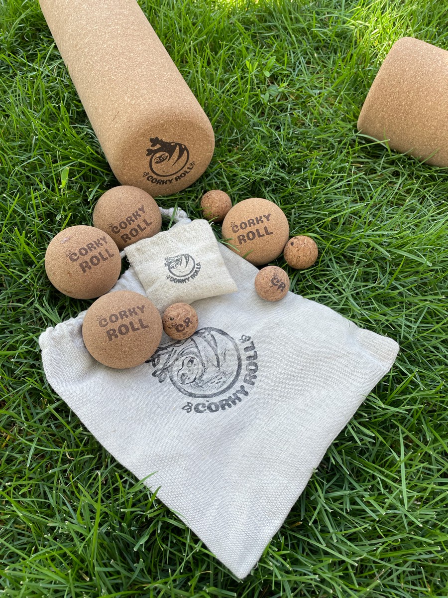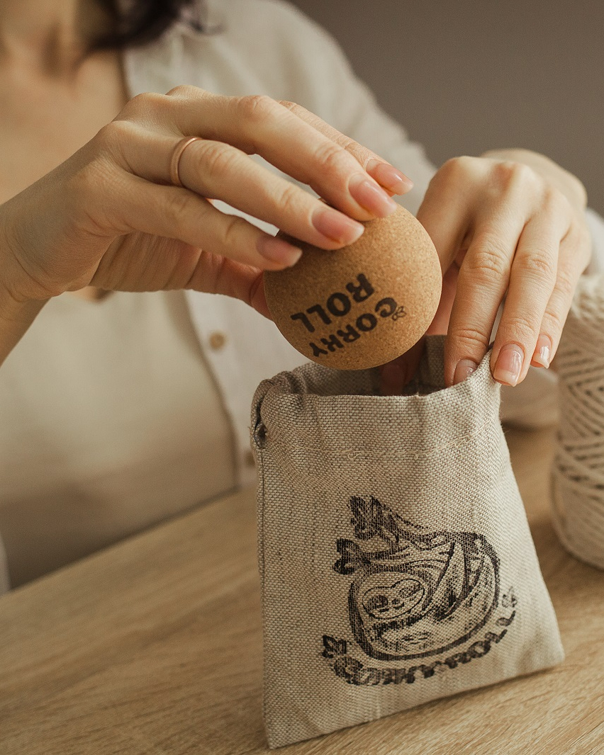 Массажный мяч двойной CORKY ROLL из пробки 15х7 см. в льняном мешочке