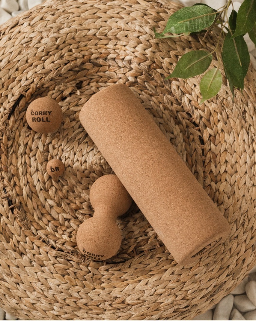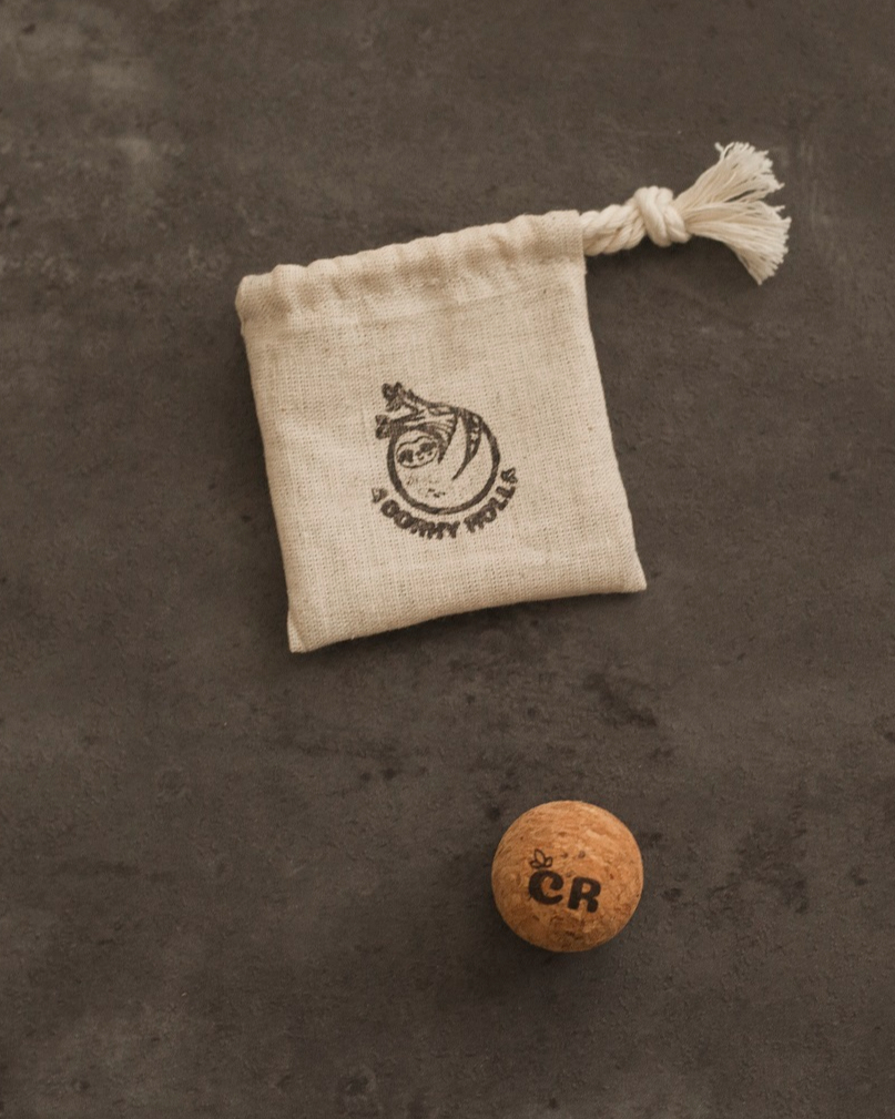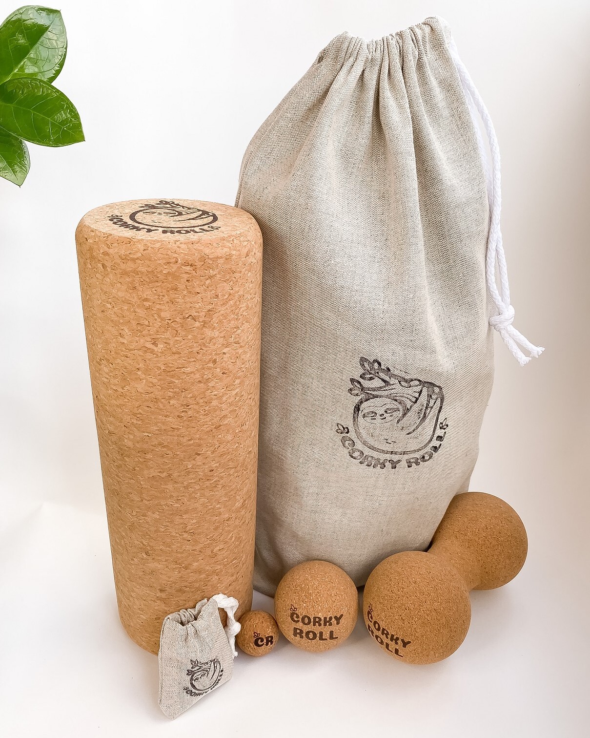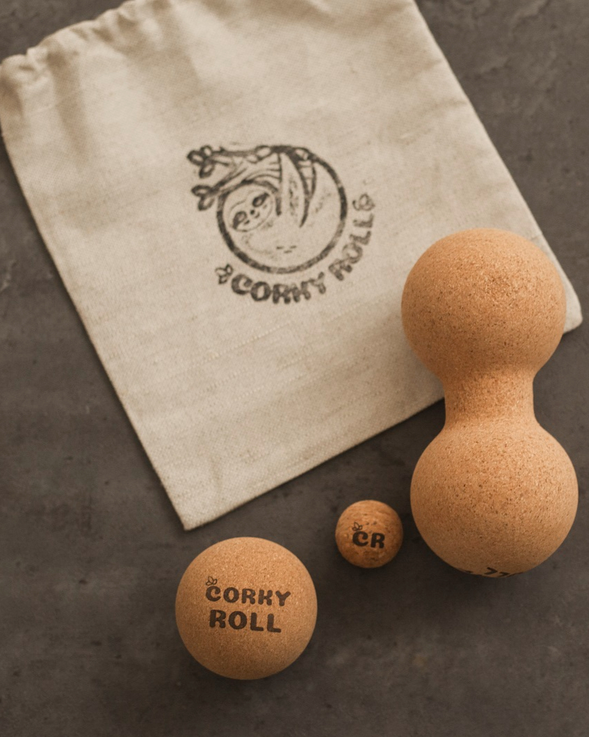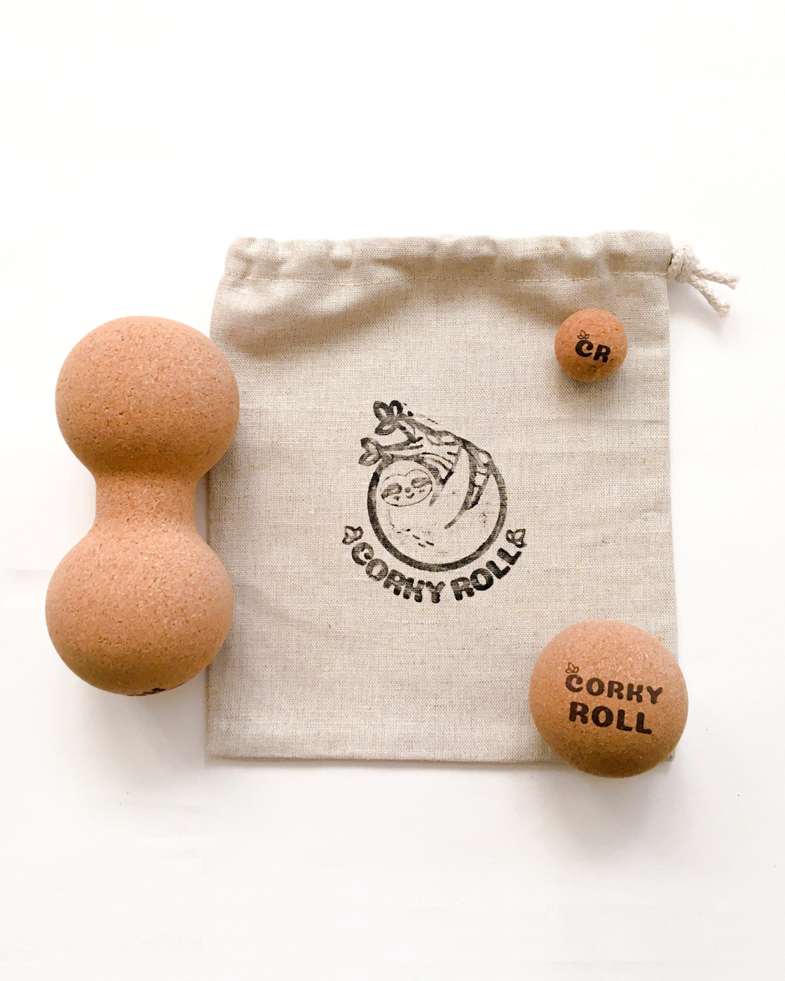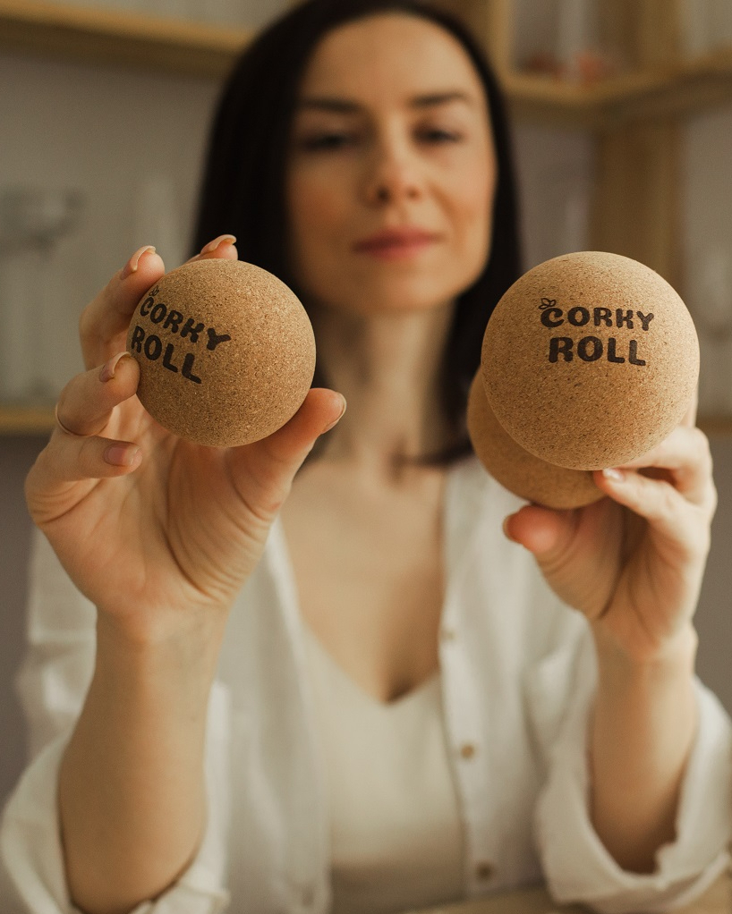 Массажный мяч двойной CORKY ROLL из пробки 15х7 см. в льняном мешочке