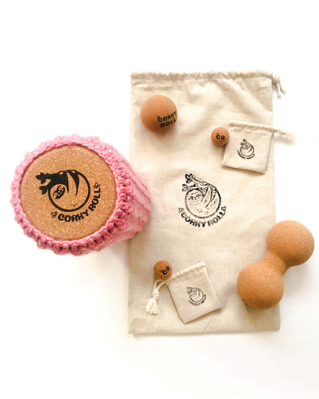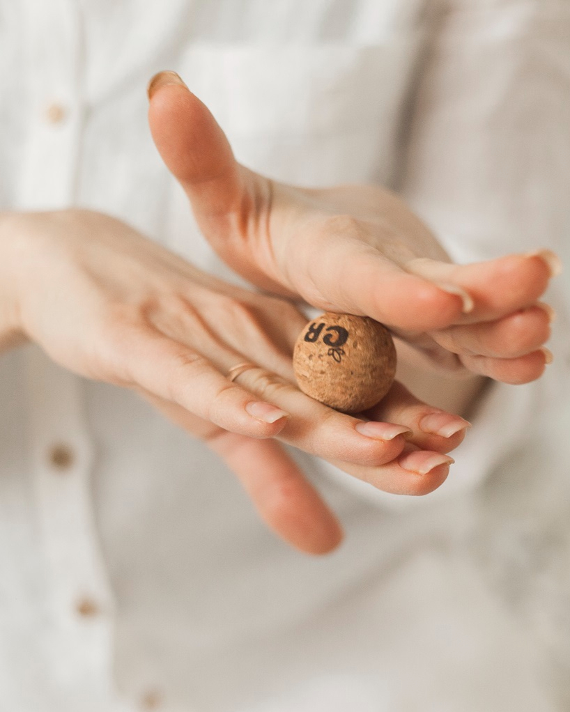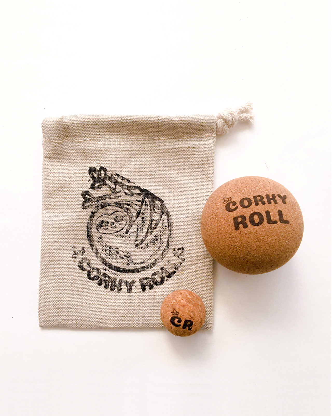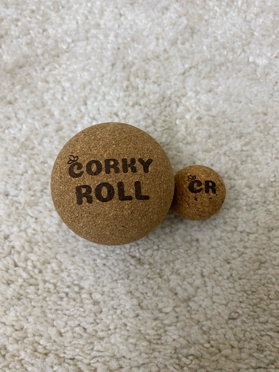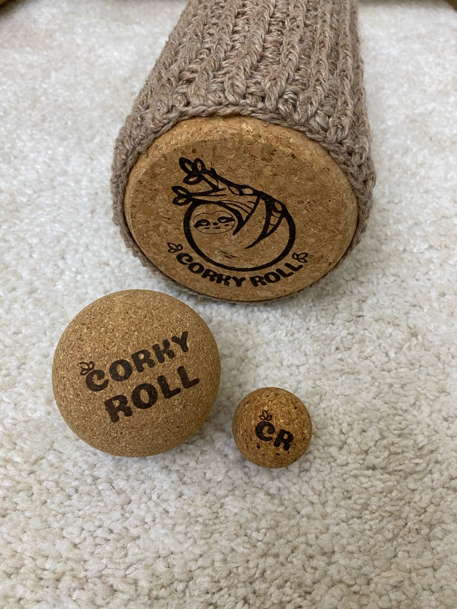Массажный мяч двойной CORKY ROLL из пробки 15х7 см. в льняном мешочке