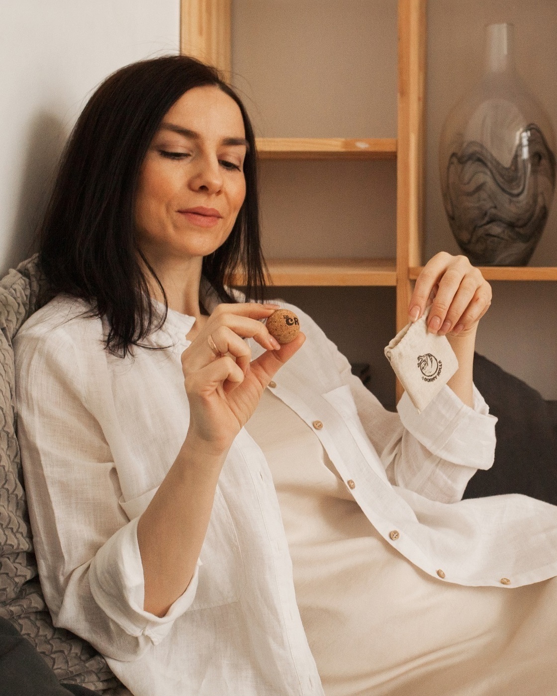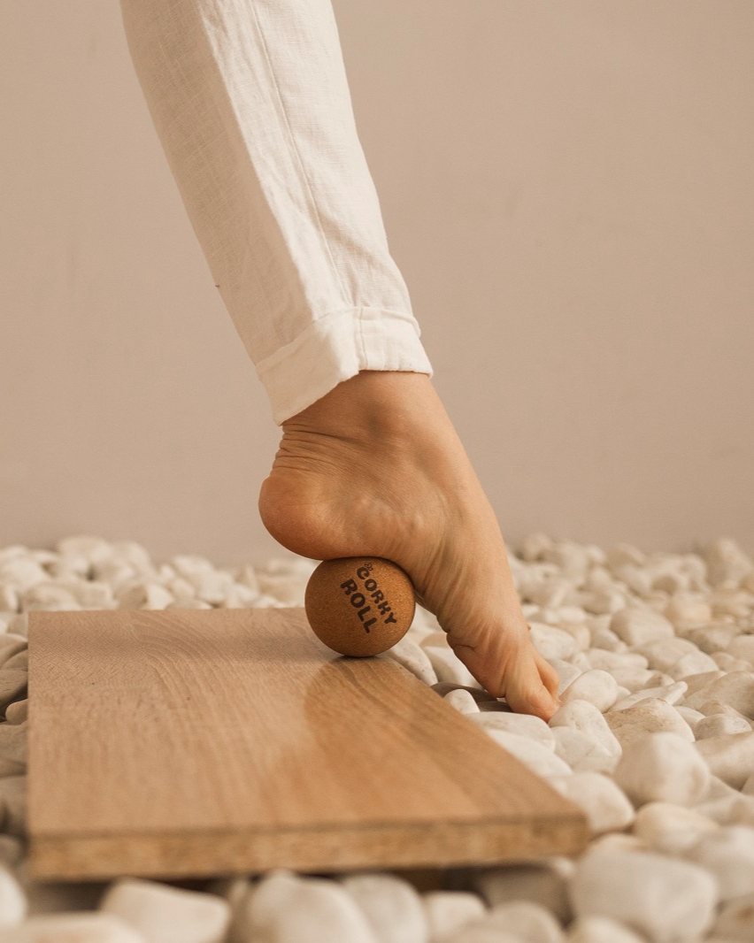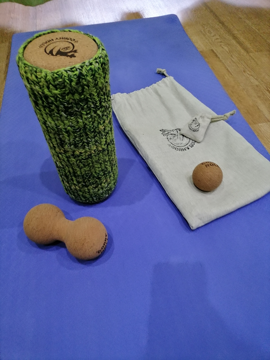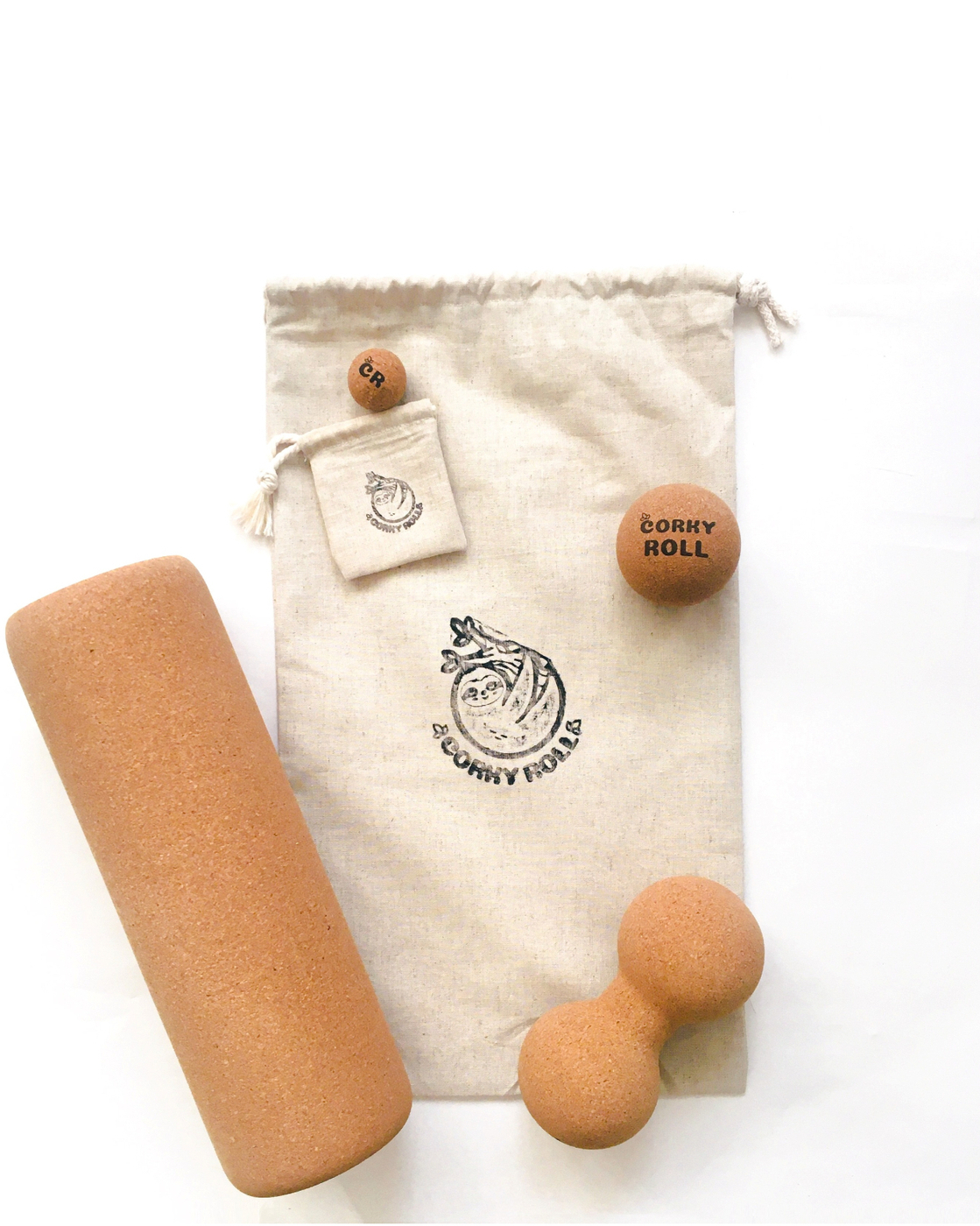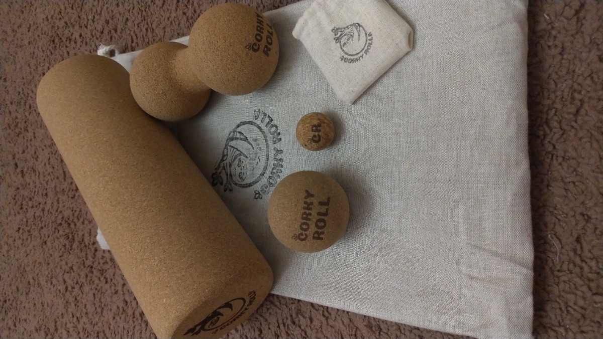 Массажный мяч двойной CORKY ROLL из пробки 15х7 см. в льняном мешочке