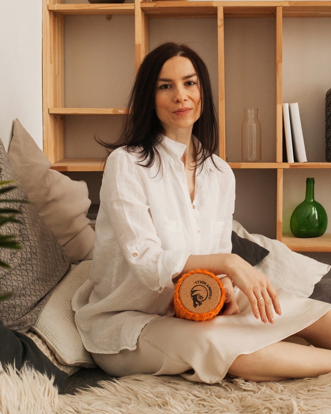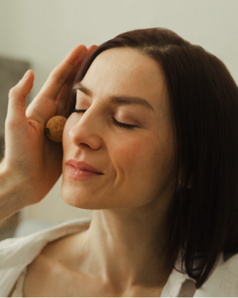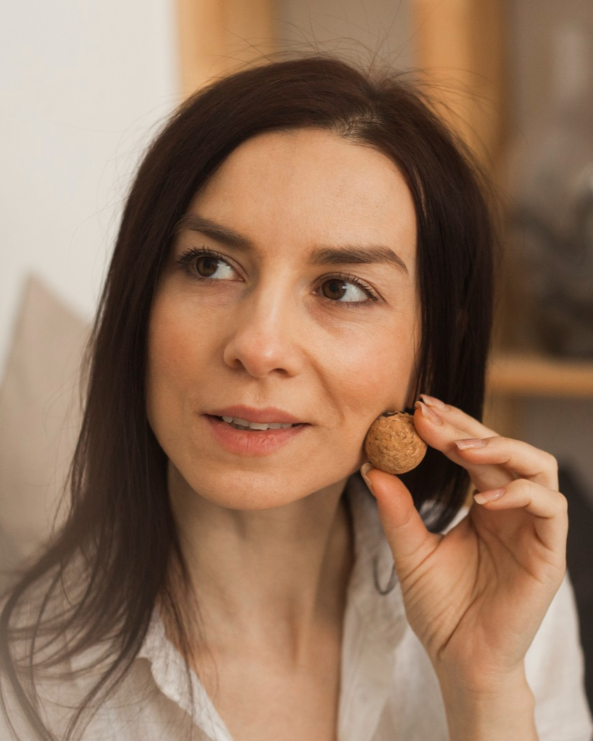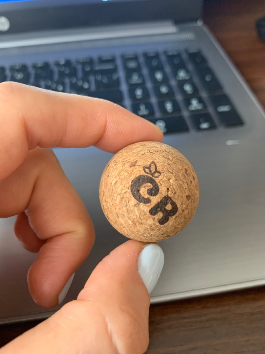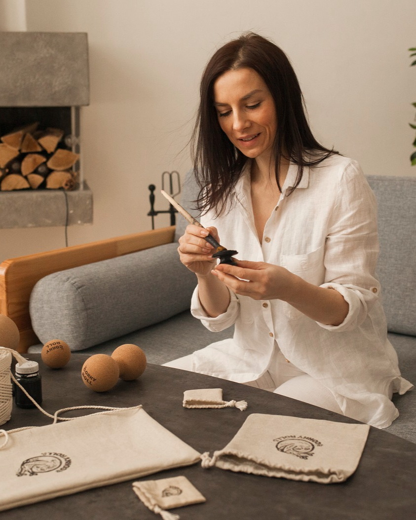 Массажный мяч двойной CORKY ROLL из пробки 15х7 см. в льняном мешочке