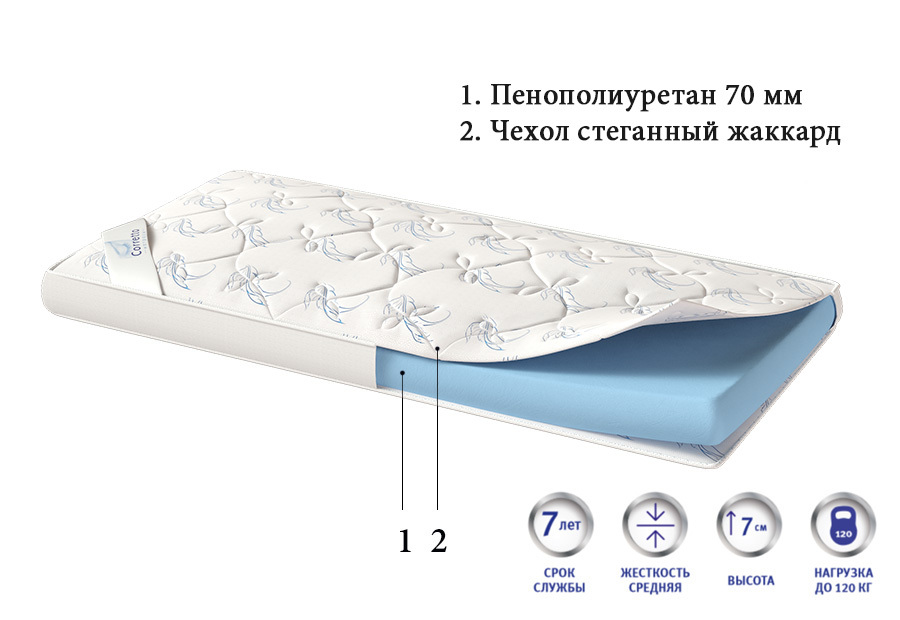 Ортопедический матрас Corretto Standart 1, Беспружинный, 110х190 см