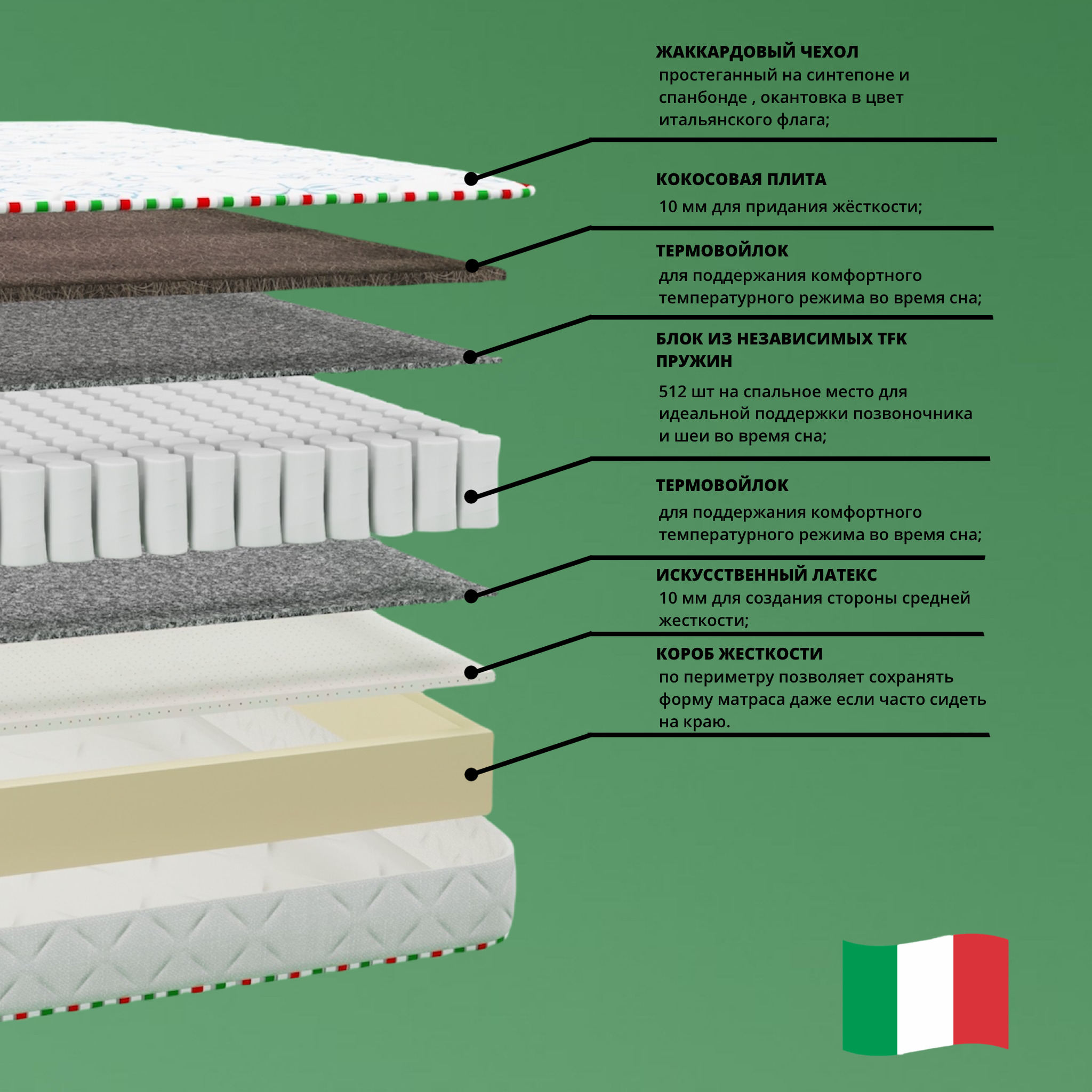 Матрас Corretto Bella, Со сторонами разной жёсткости, Независимые пружины, 80х160 см