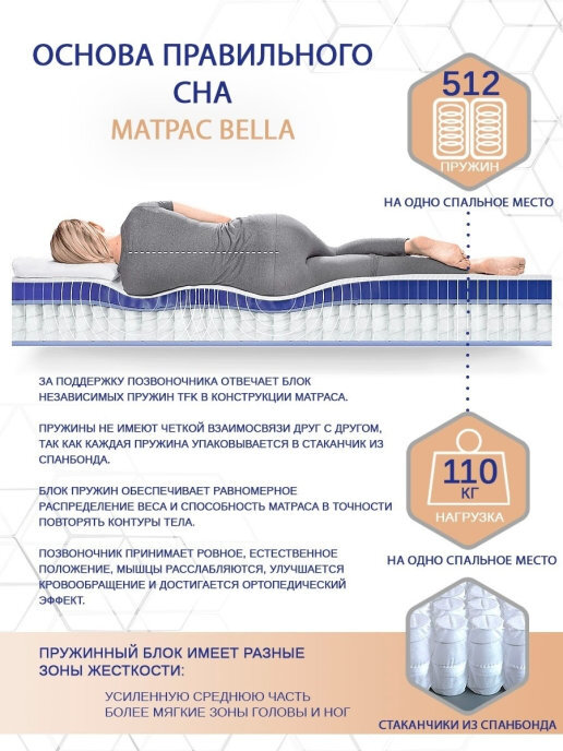 Матрас детский Corretto PARMA, средней жескости, Независимые пружины, 60х140 см