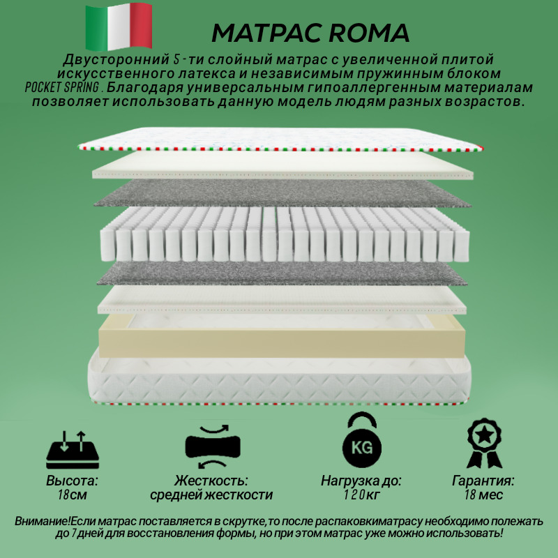 Матрас Corretto Roma, средней жескости, Независимые пружины, 100х200 см