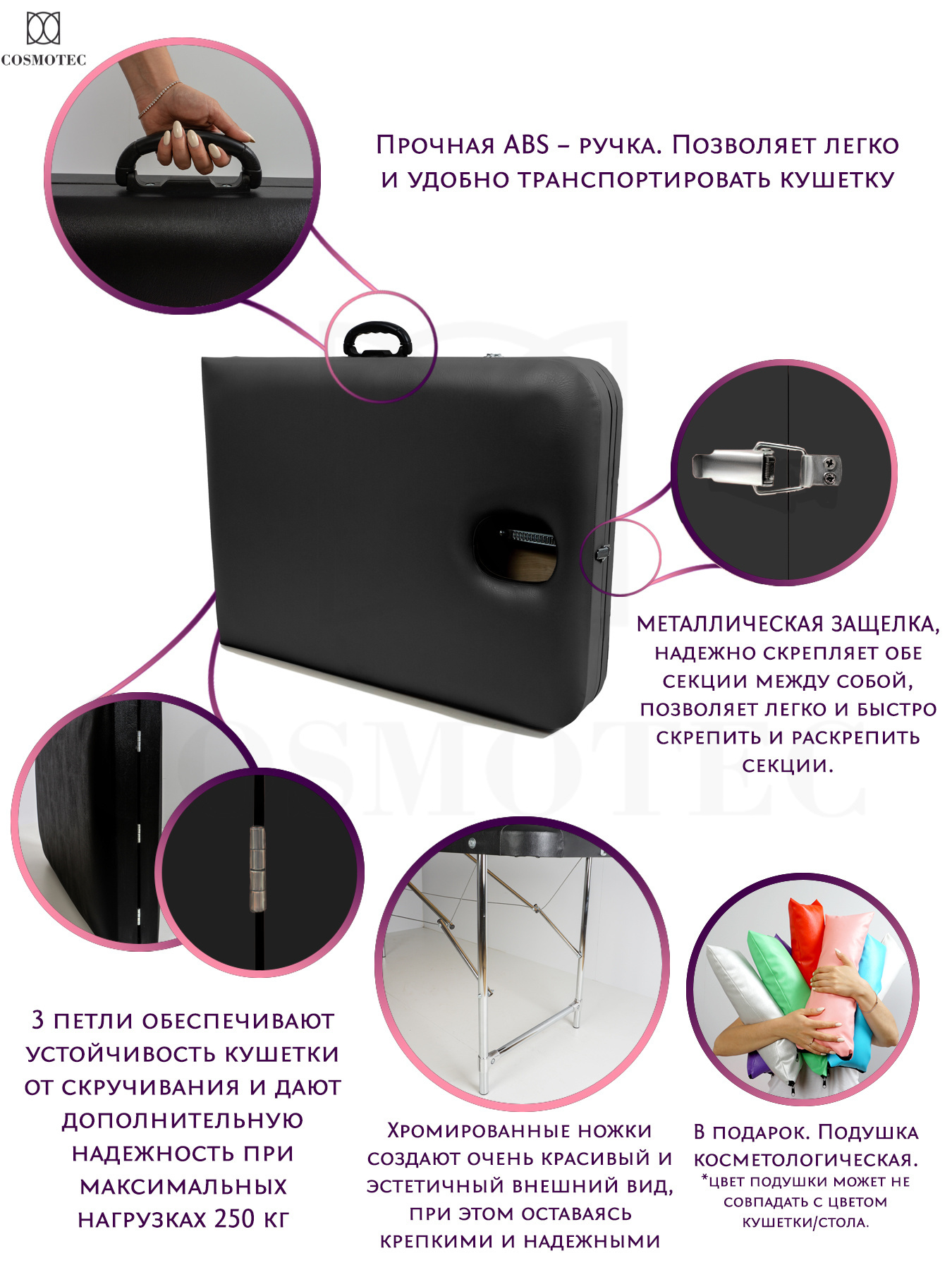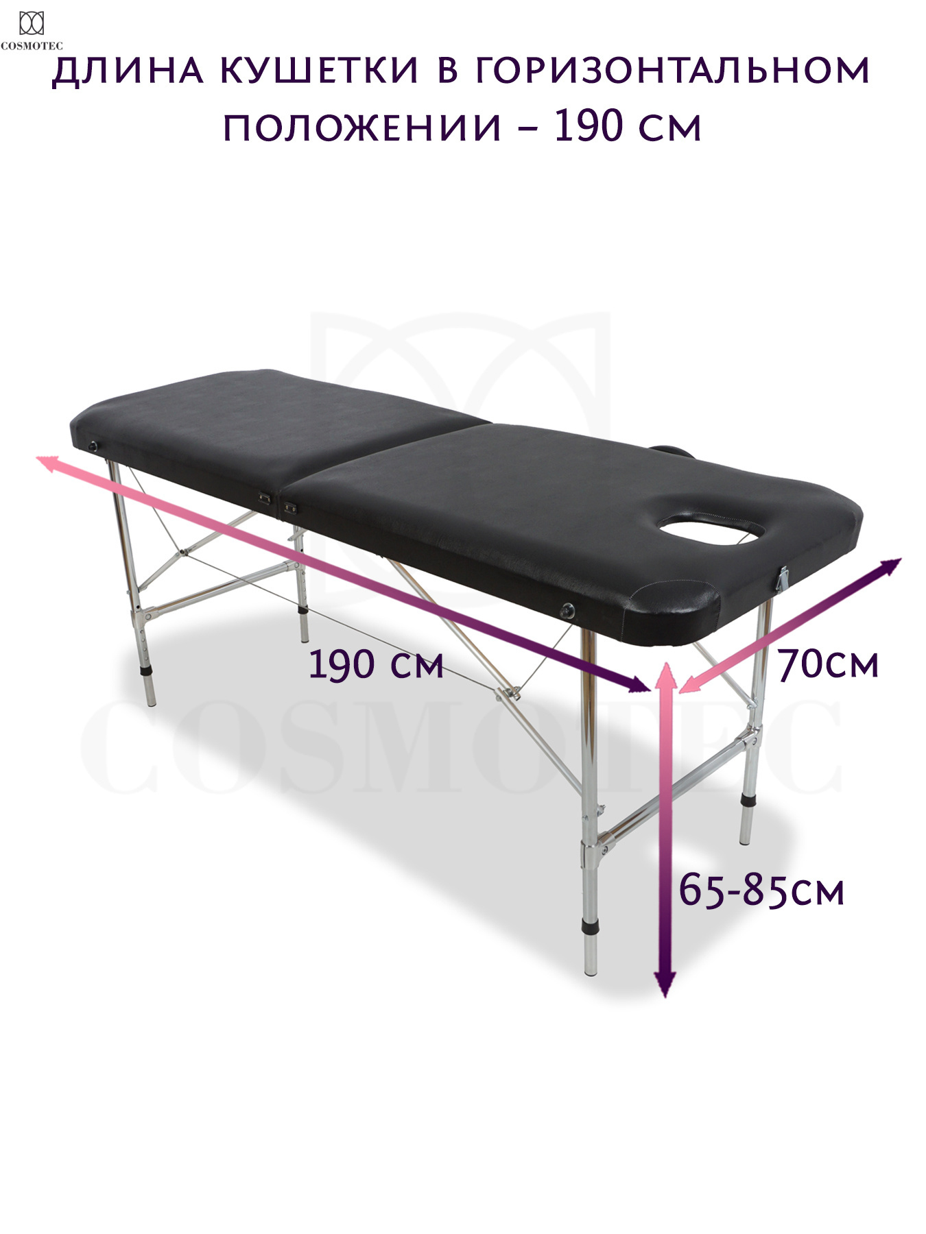 Массажная кушетка складная Cosmotec, Мастер 190Р увеличенная с регулировкой высоты, 190х70, Белая