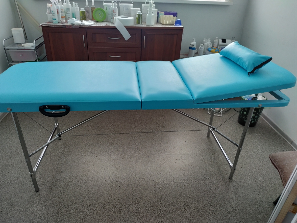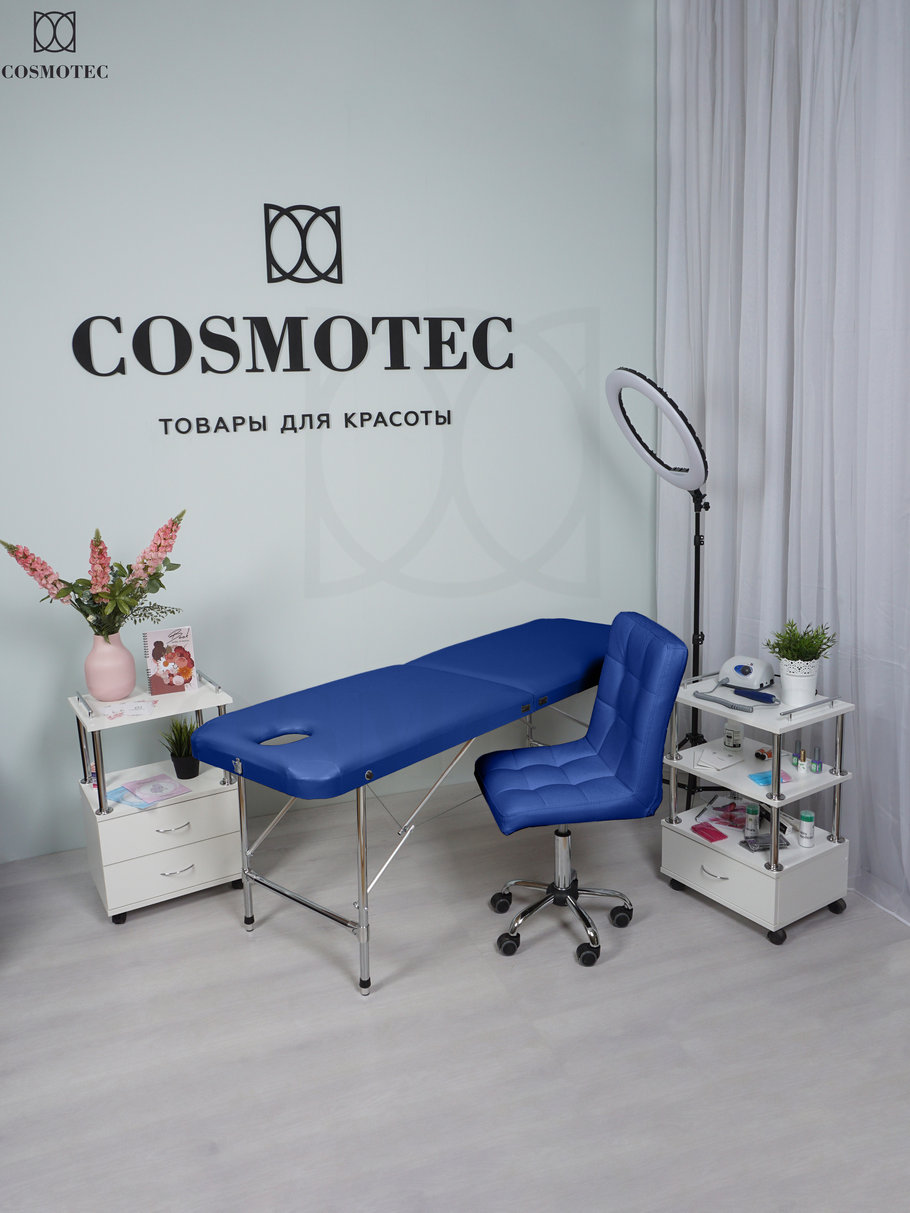 Массажная кушетка складная Cosmotec Мастер Р с отверстием для лица и регулировкой, 180х60, Синяя