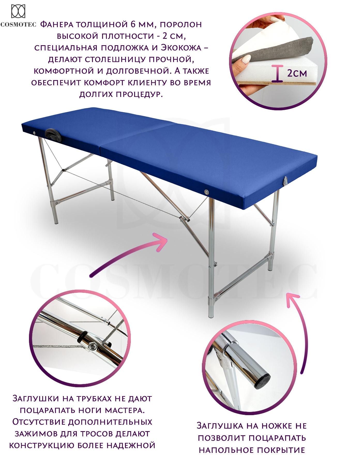 Кушетка для массажа Cosmotec Эконом Мастер, с вырезом для лица, 180х60, синяя