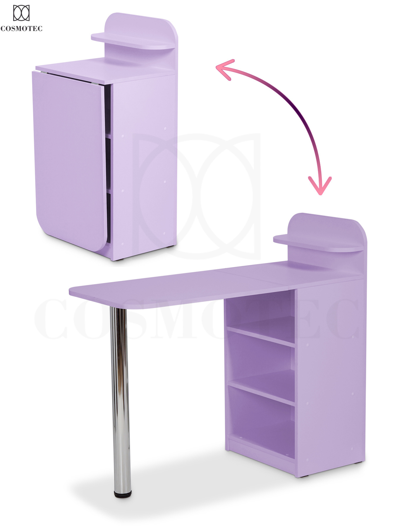 Маникюрный складной стол Cosmotec Орхидея с полочками внутрь и полкой для гель-лаков, лаванда
