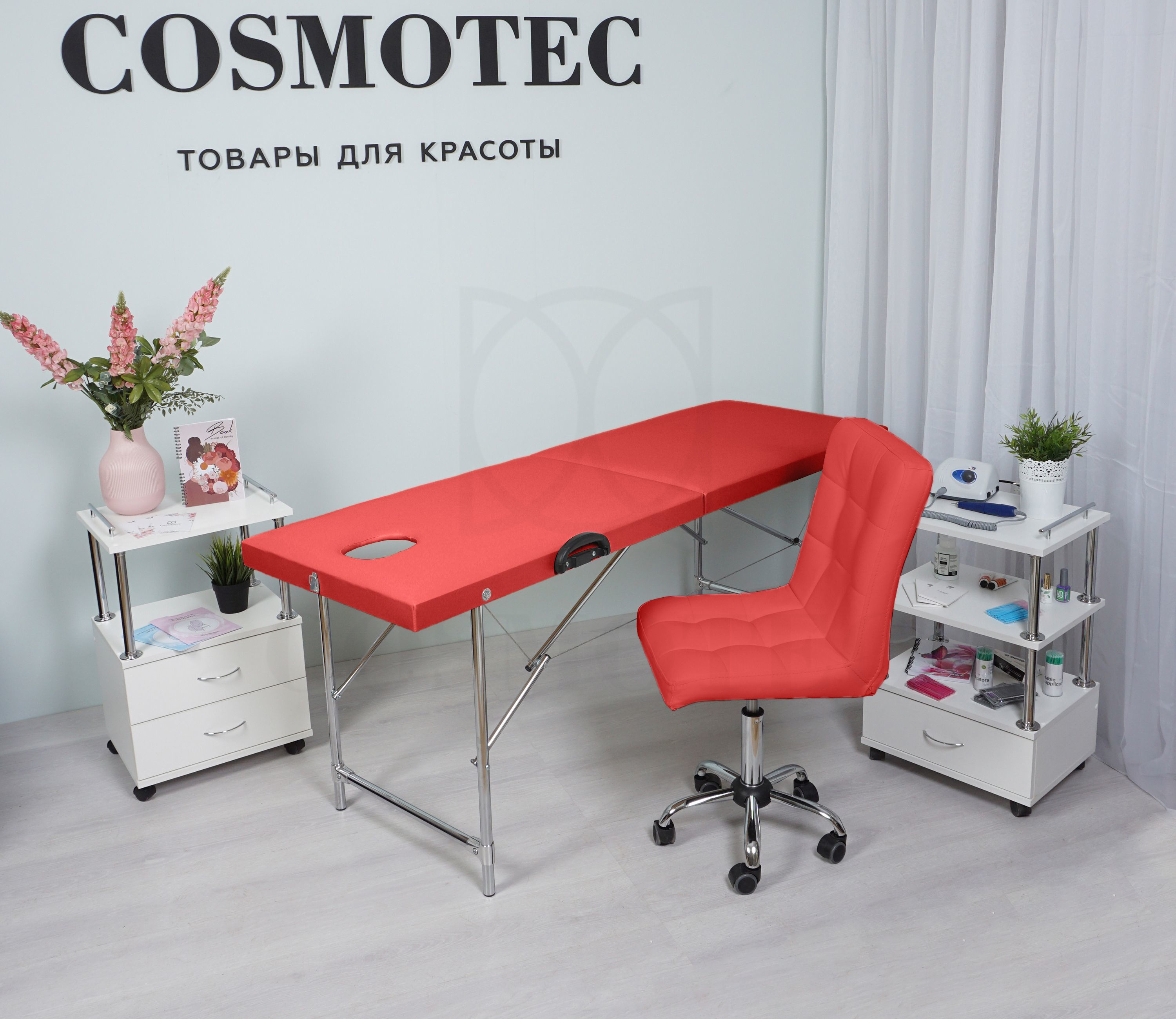 Массажный стол складной Cosmotec Эконом Мастер с отверстием для лица 180х60 Красный