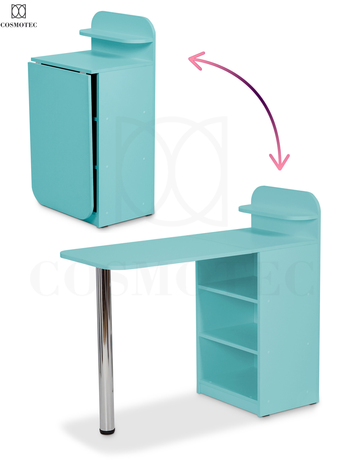Маникюрный складной стол Cosmotec Орхидея с полочкой для гель-лаков, голубой