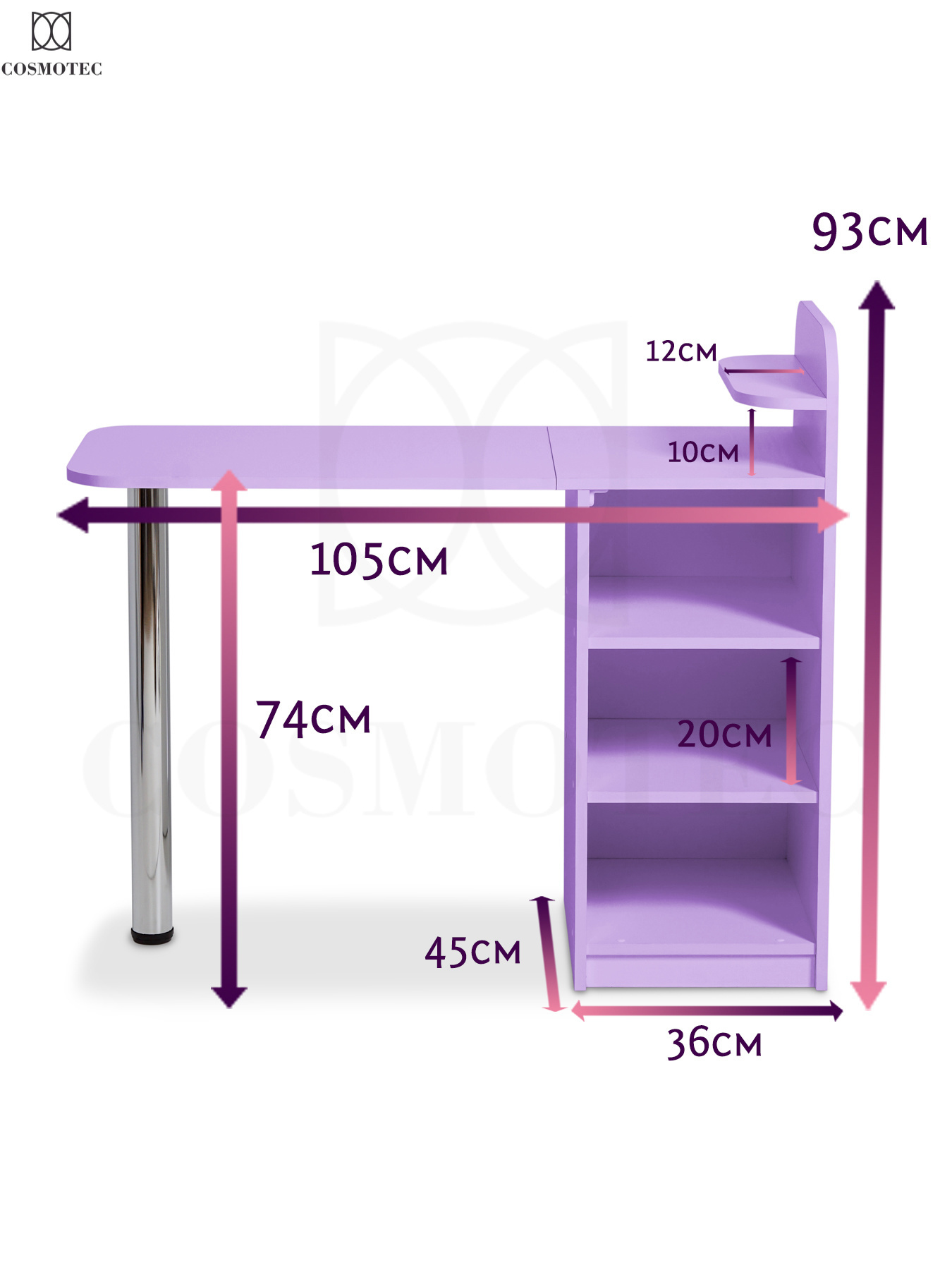 Маникюрный складной стол Cosmotec Орхидея с полочками внутрь и полкой для гель-лаков, лаванда
