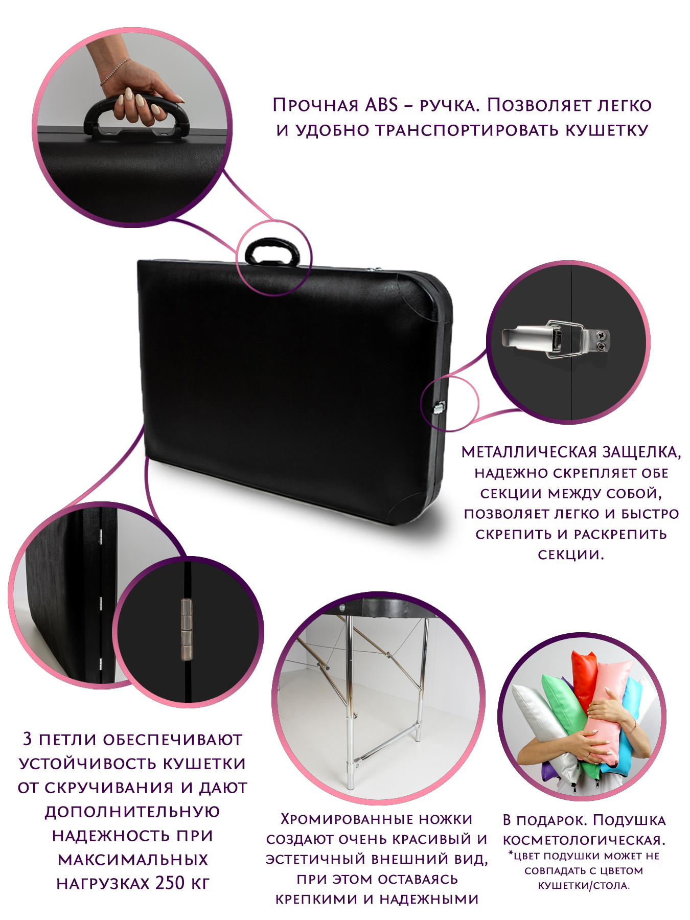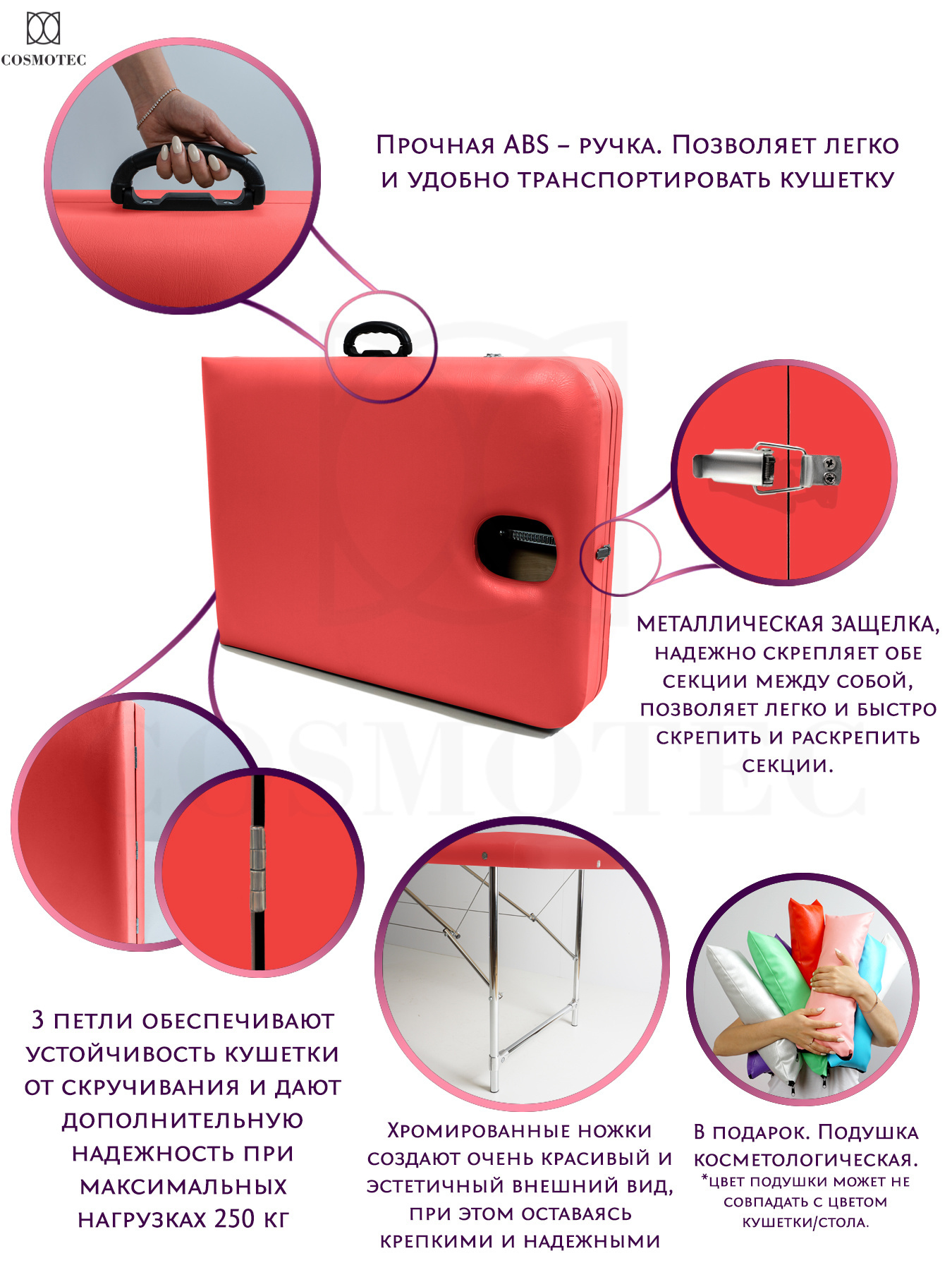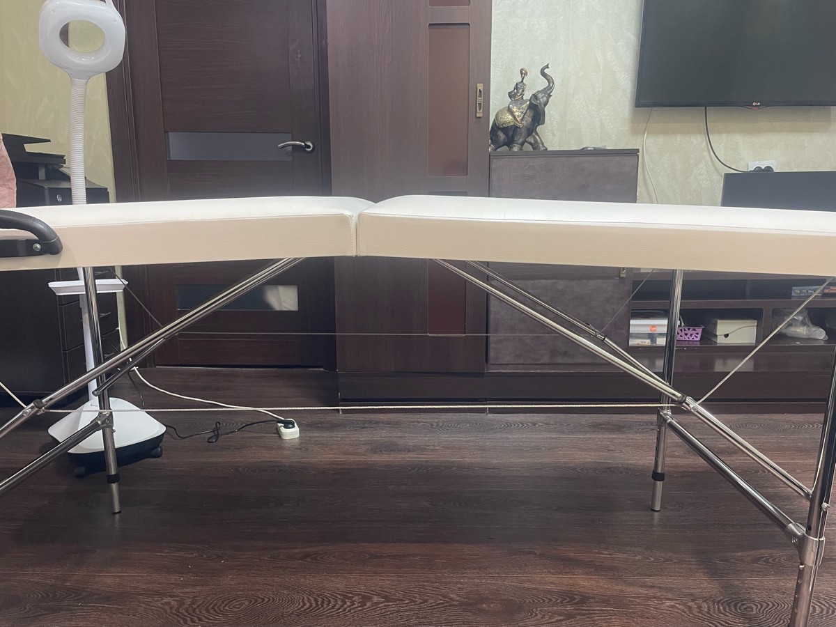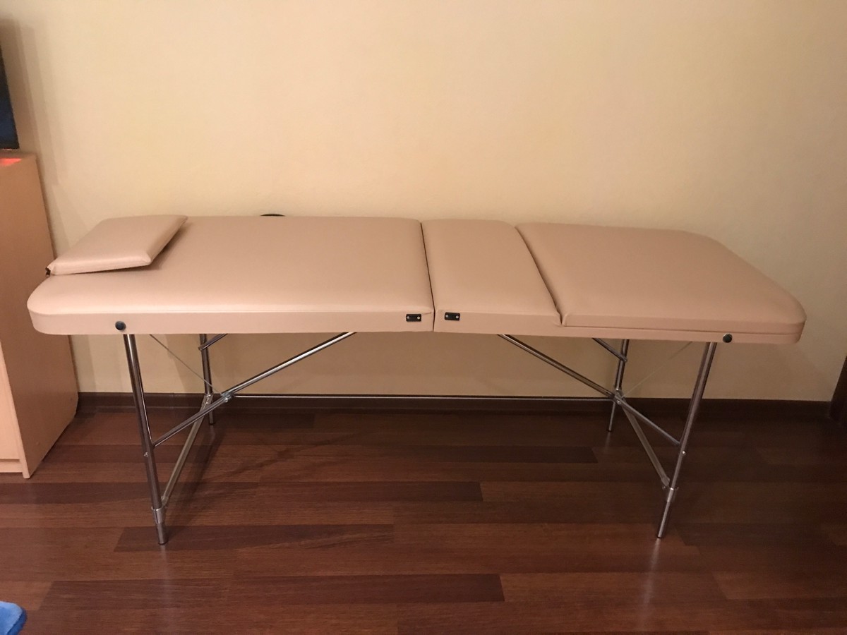 Трехсекционная кушетка для массажа складная Cosmotec Мастер Профи повышенных габаритов 190х70 Пудра