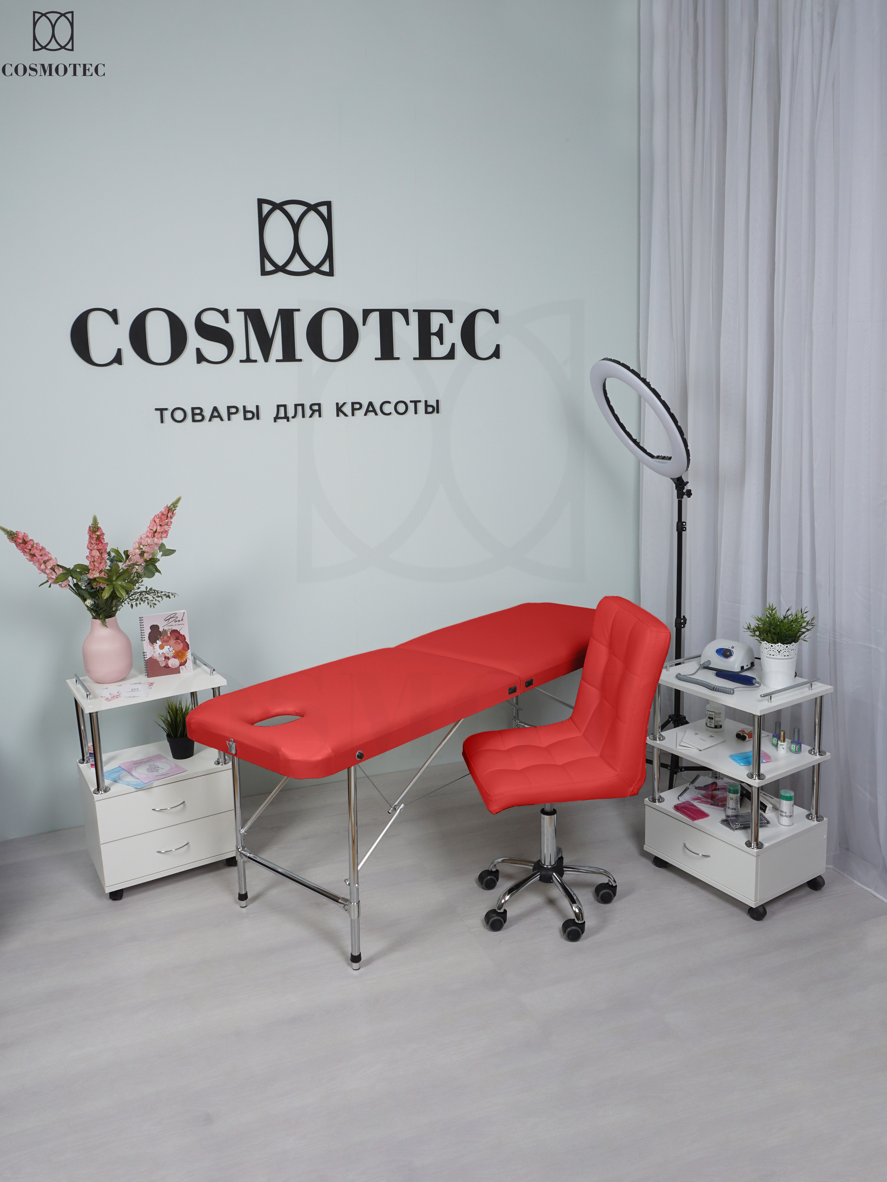 Массажный стол складной Cosmotec Мастер с отверстием для лица, 180х60, Красный
