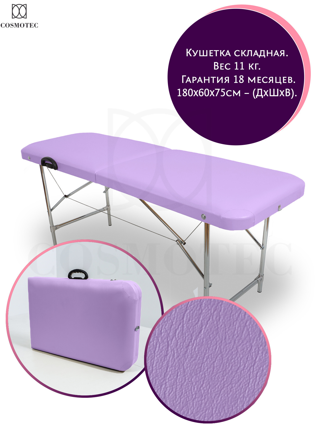 Косметологическая кушетка Cosmotec Косметик 180х60 лаванда