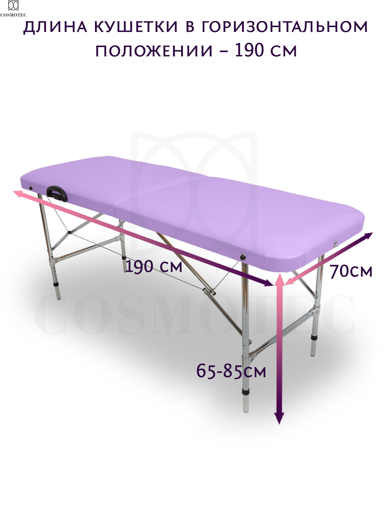 Складная косметологическая кушетка Cosmotec Косметик 190Р, с регулировкой, Лаванда