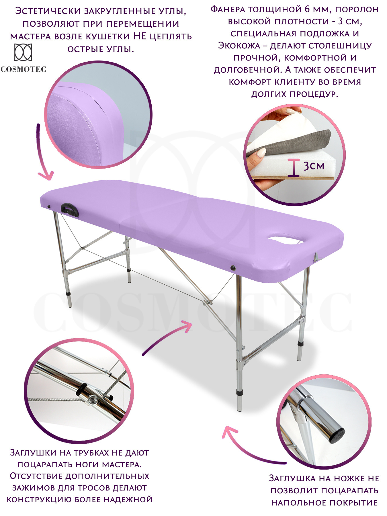 Кушетка косметологическая складная Cosmotec Косметик, 180х60, лавандовая
