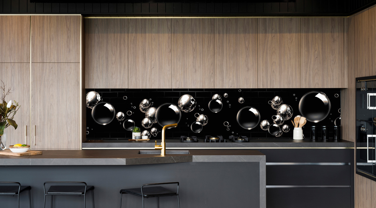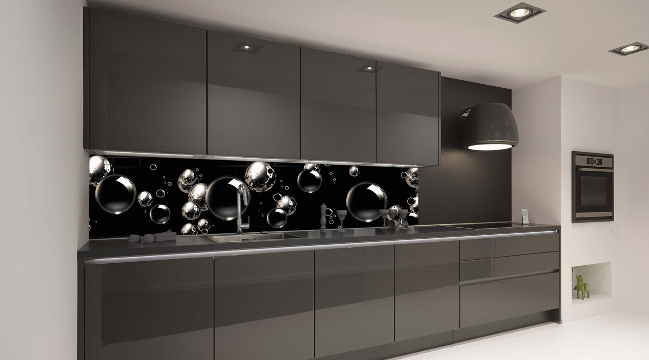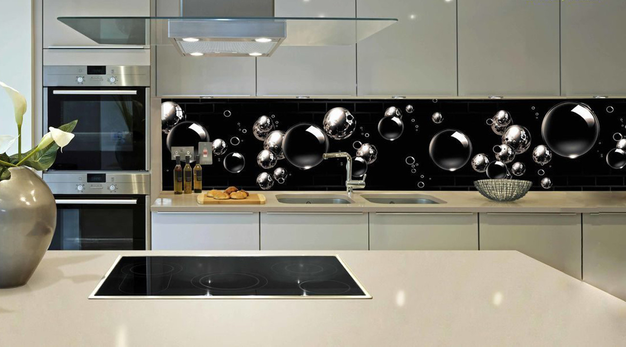 Фартук для кухни из АБС пластика 2000*600*1,5мм. Кухонный фартук ABS с фотопечатью "Черные пузыри"