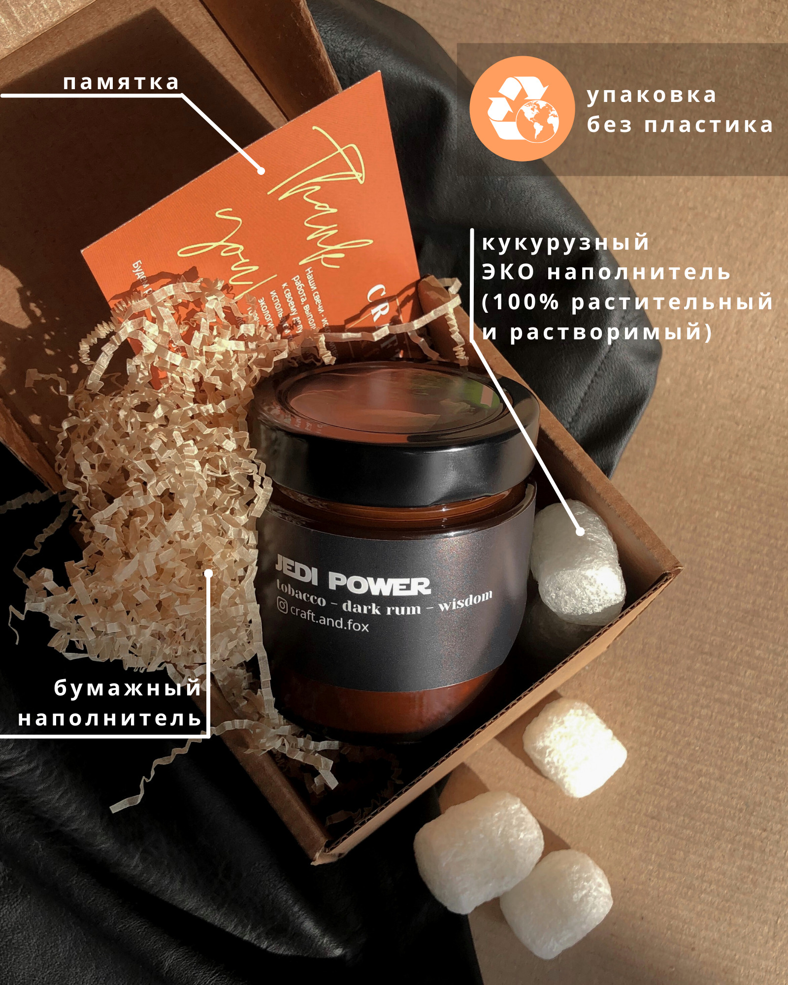 Свеча ароматическая CRAFT & FOX "Сила джедая / 200 мл. / деревянный фитиль", 8 см х 7 см
