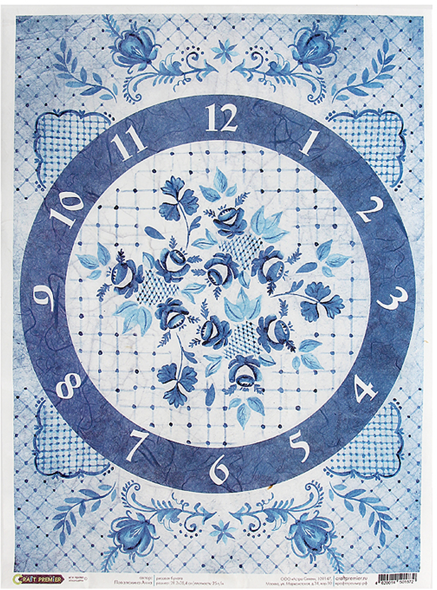 Рисовая бумага для декупажа Craft Premier "Гжель: часы", А3