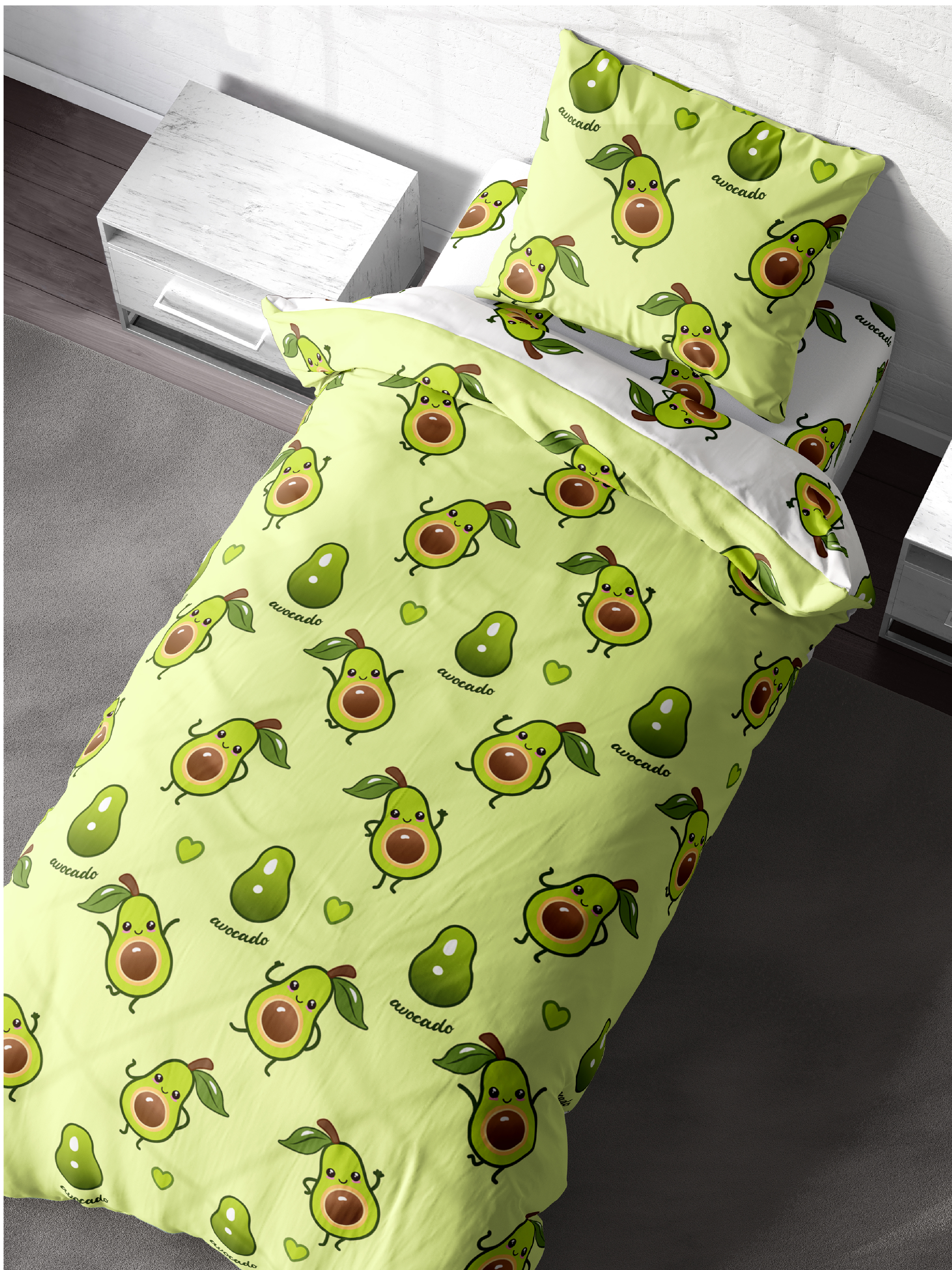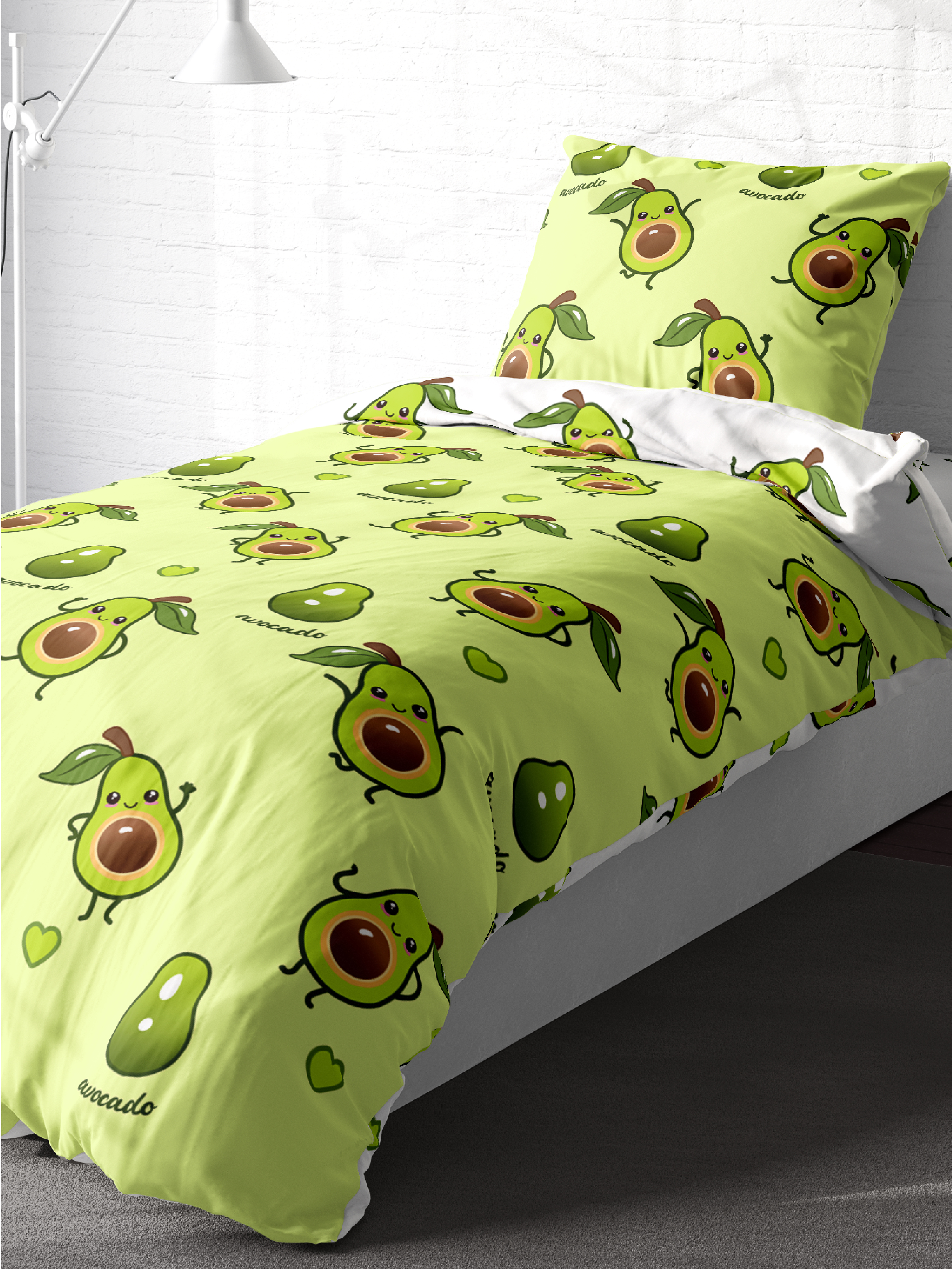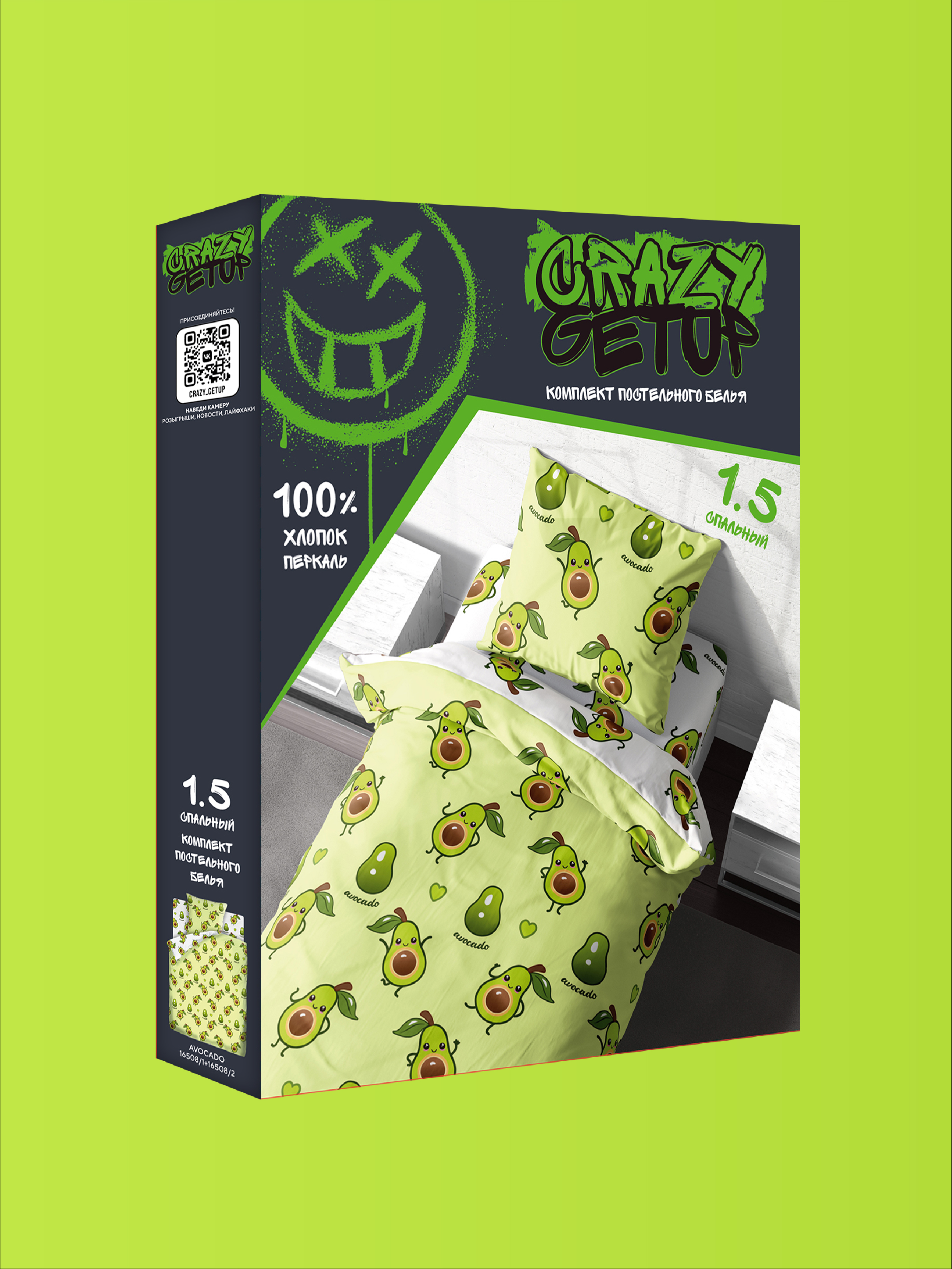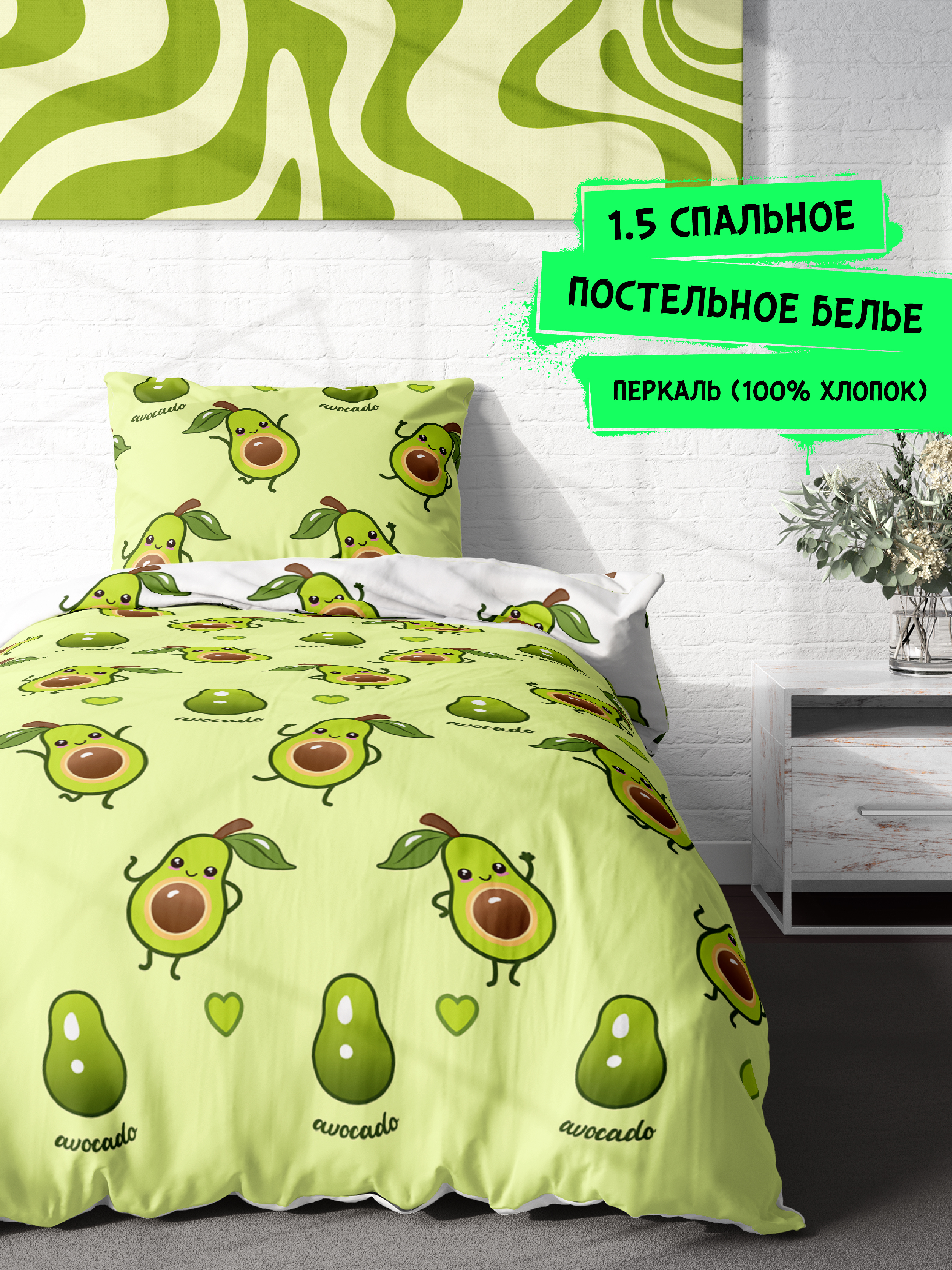 Постельное белье детское / подростковое, полутороспальное / 1,5 спальное, перкаль (100% хлопок) "Crazy Getup" (70х70) Авокадо / Аvocado