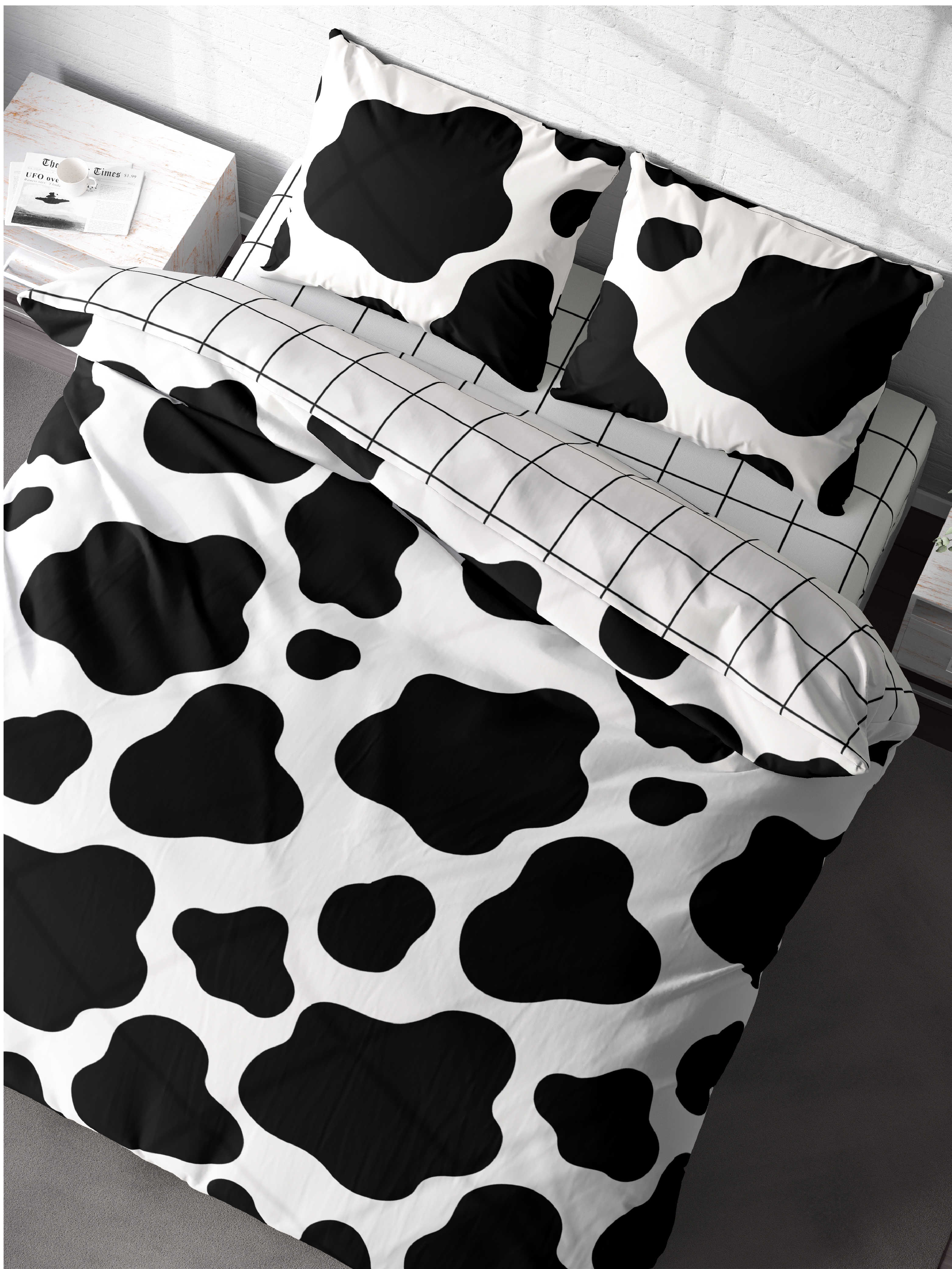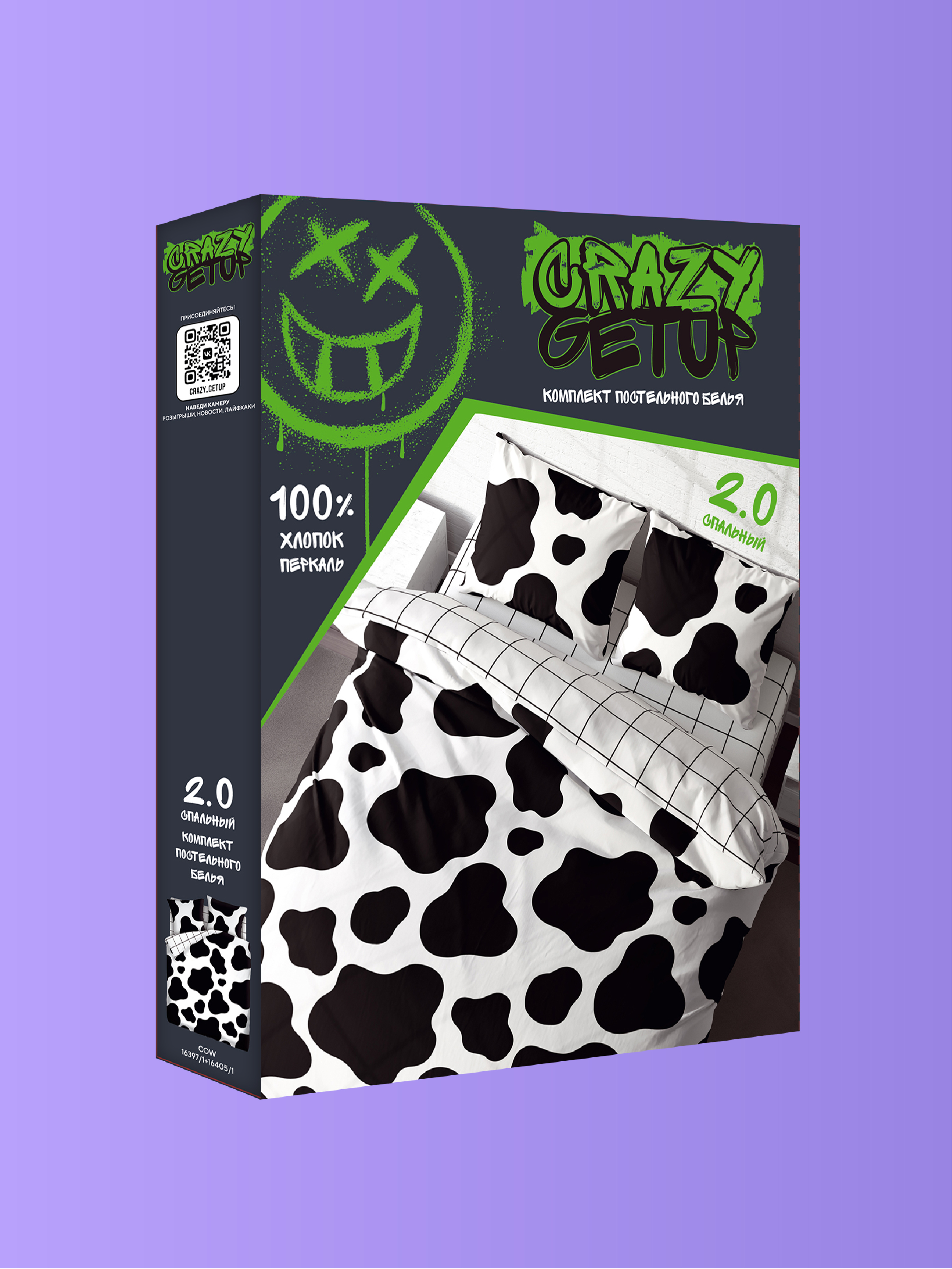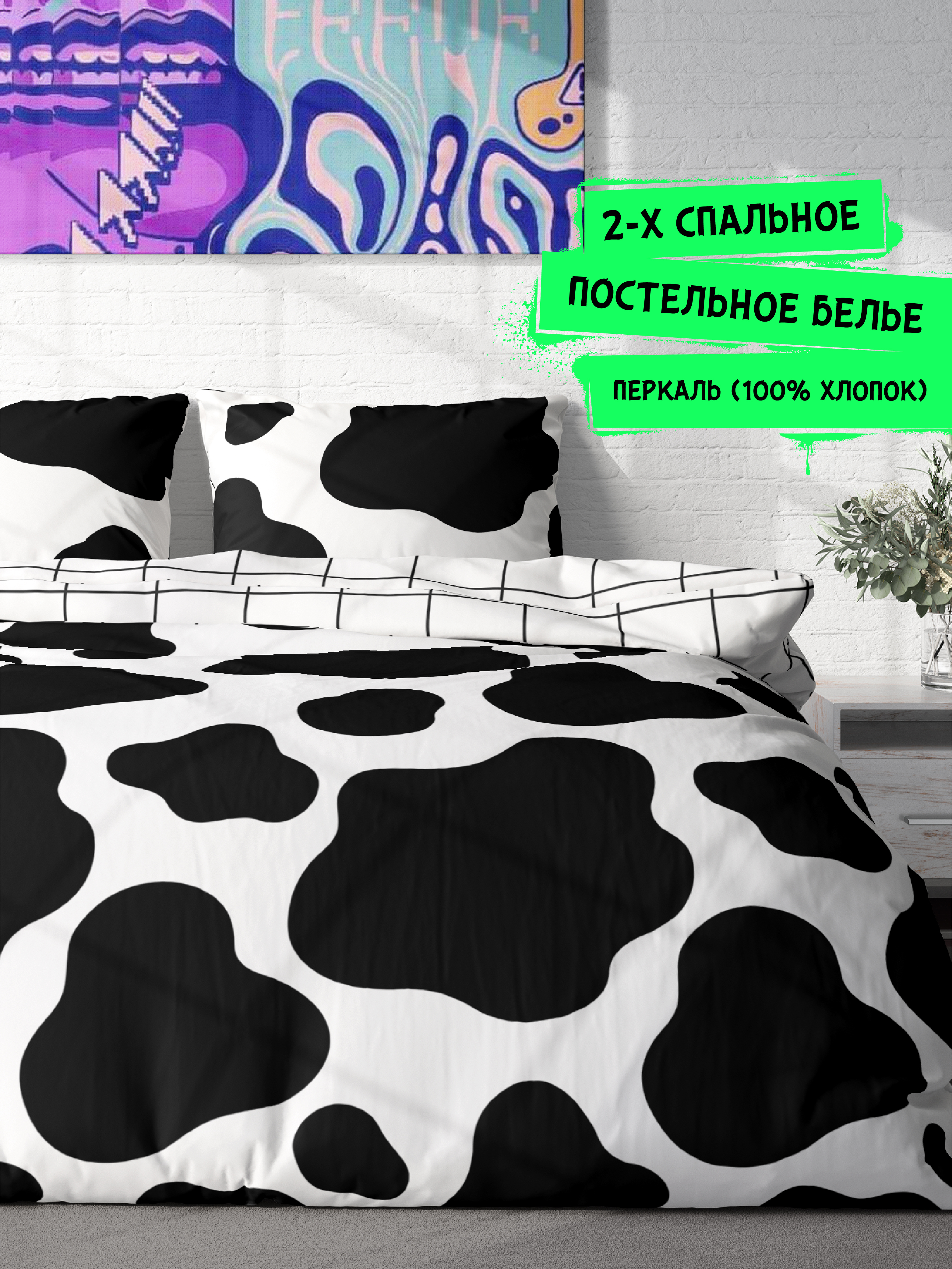 Постельное белье 2 спальное / двуспальное, подростковое / взрослое , перкаль (100% хлопок) "Crazy Getup" (70х70) Корова / Cow
