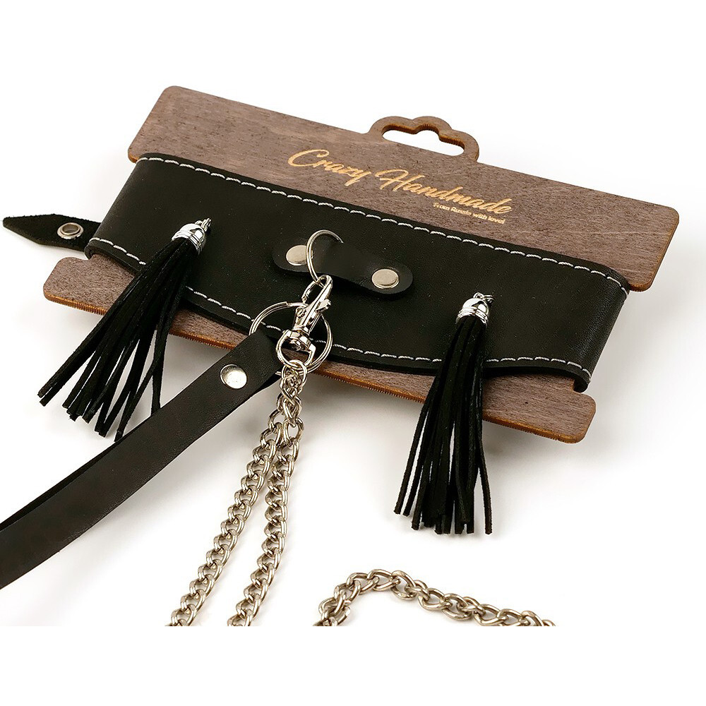 Ошейник из натуральной кожи с кисточками Crazy Handmade Стэнли